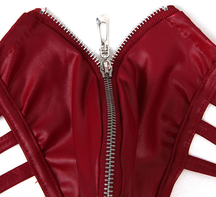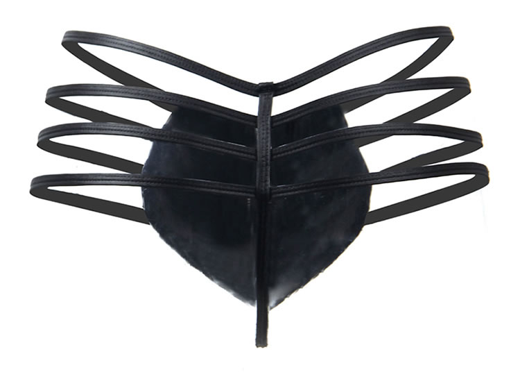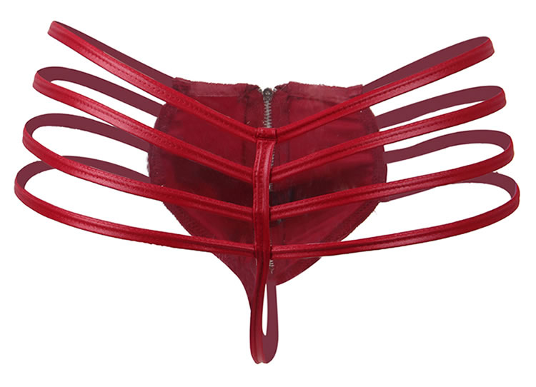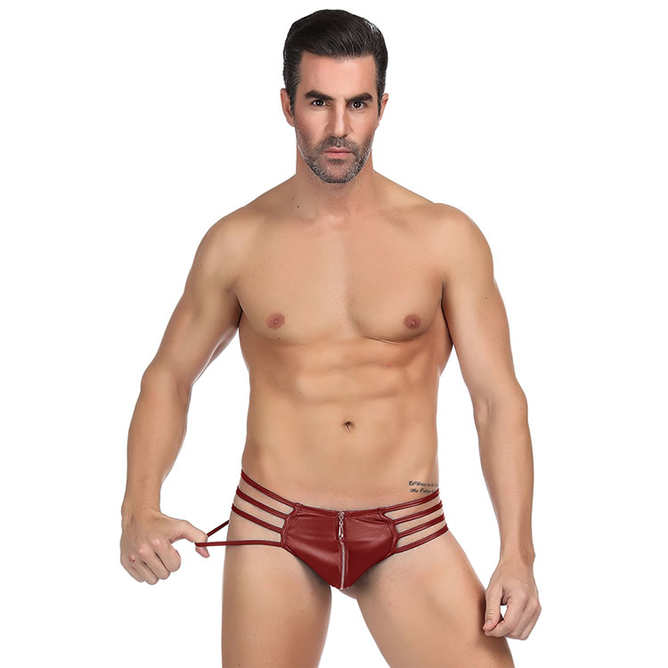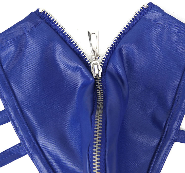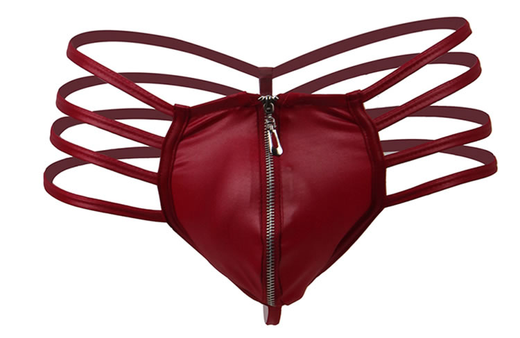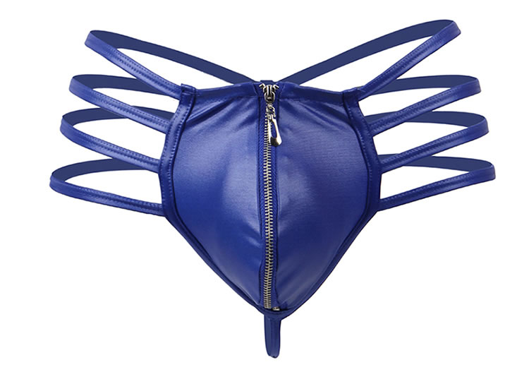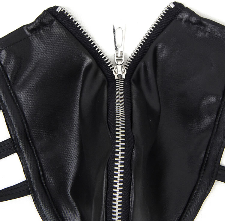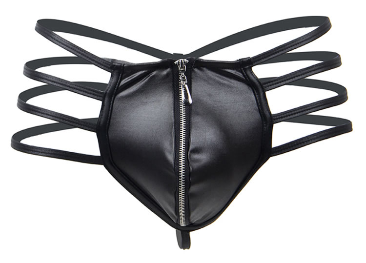 It's impossible not to be sexy while wearing this open back panty with strappy details, designed in a wet look, faux leather fabric, a front zipper closure.
