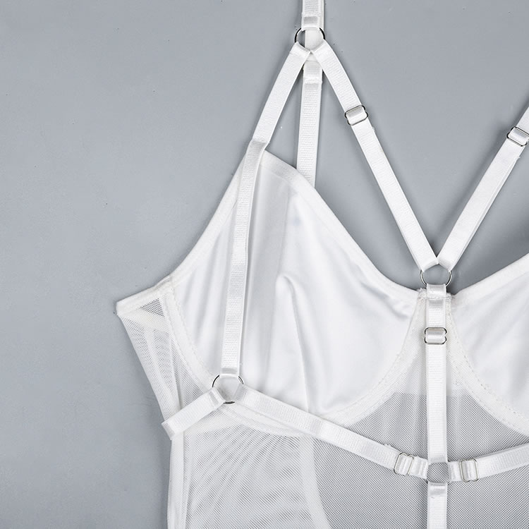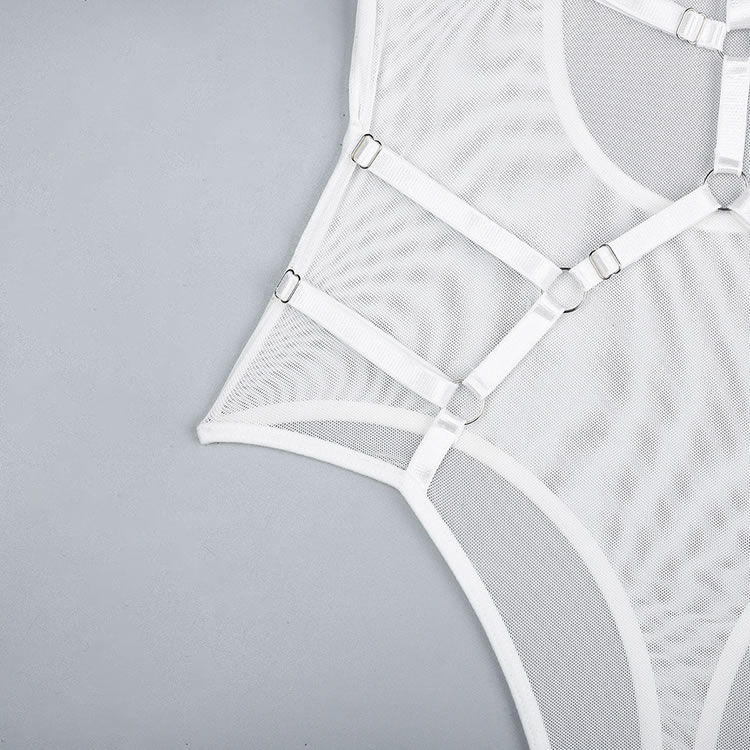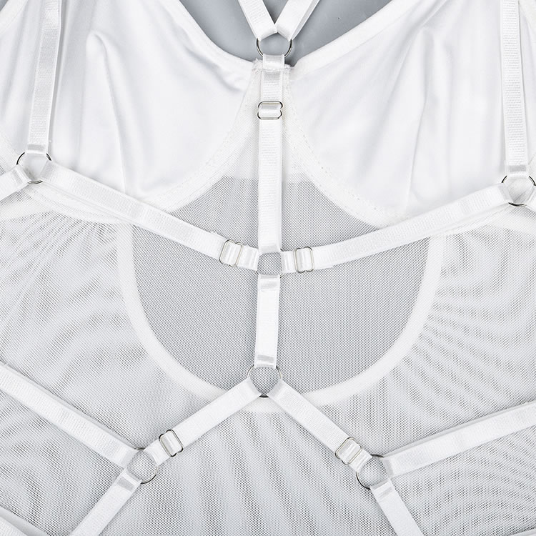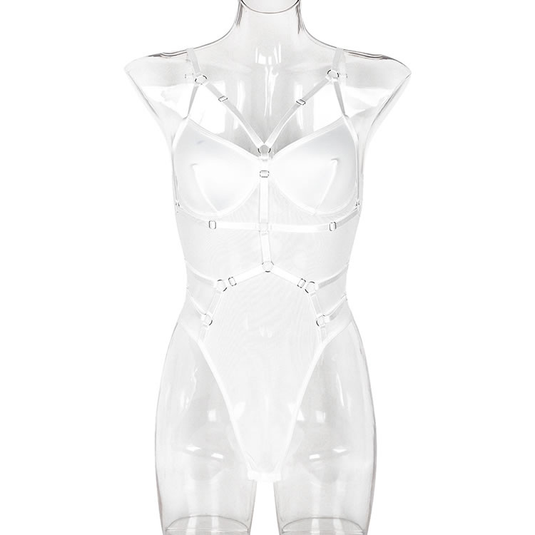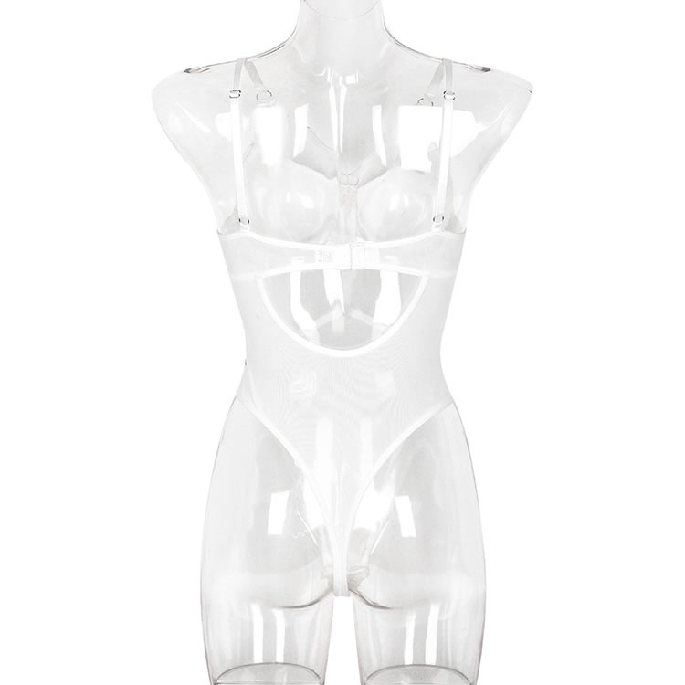 Spice up your evening in this sexy teddy set featuring underwire cups with strappy detailing, adjustable spaghetti straps, a hook and eye back closure with a keyhole, a high cut leg, a snap crotch, and a thong cut back.