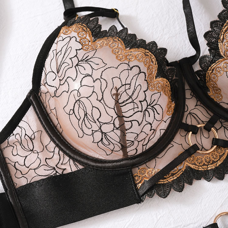 Introducing the Midnight Beauty Lace Underwire Bra and Garter Set. Embrace elegance and allure with delicate lace details and a flattering underwire design. Perfect for enhancing your evening look with sophistication and charm.