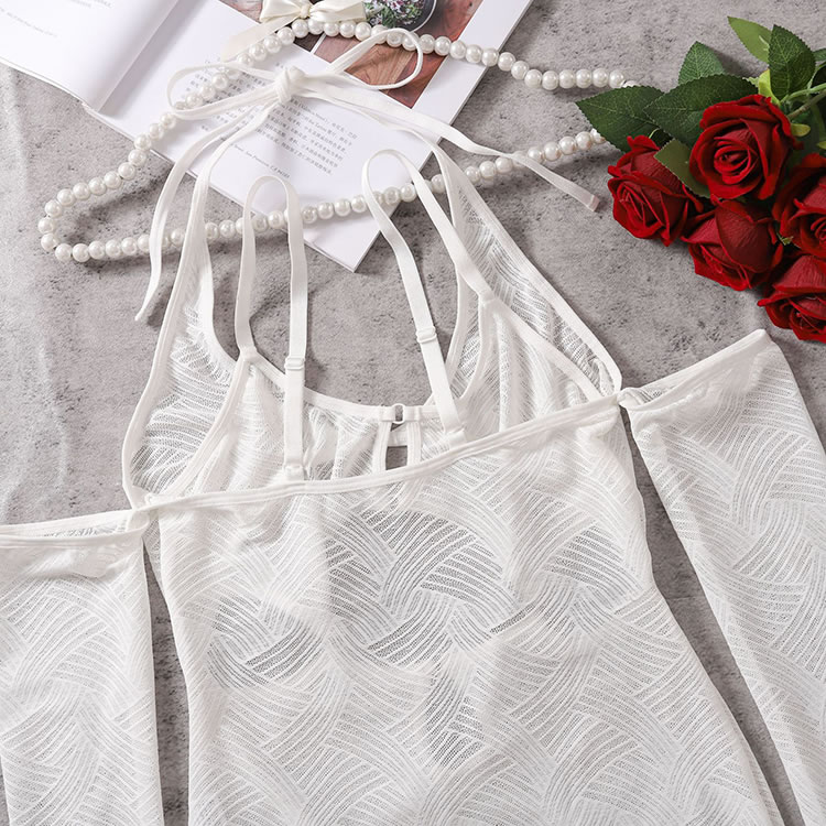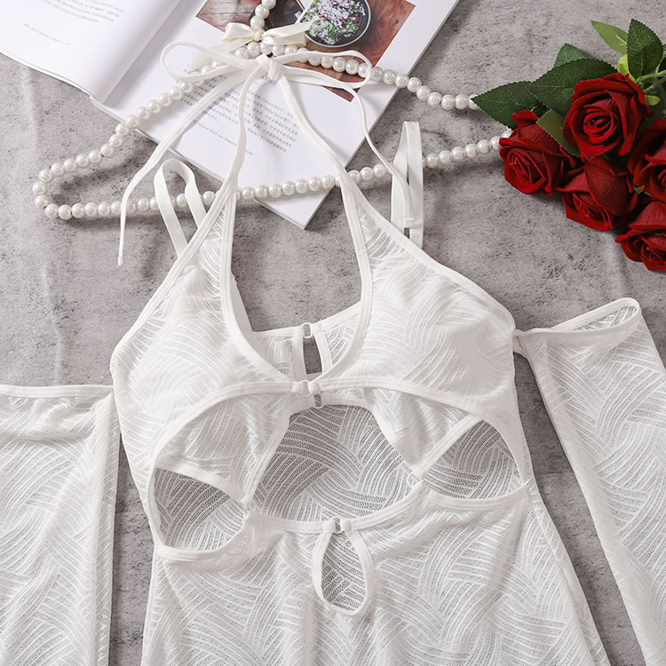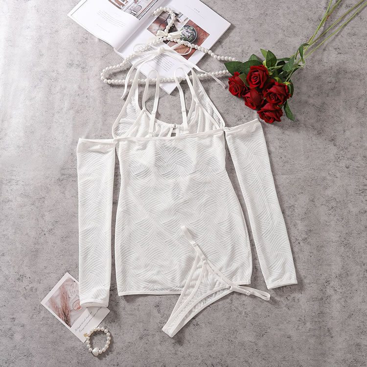 Cozy up with your sweetheart in this playful chemise, featuring a scoop neckline with halter ties, adjustable spaghetti straps, and a flirty cut-out bodice. Complete the look with matching gloves and a coordinating panty for a touch of irresistible charm.