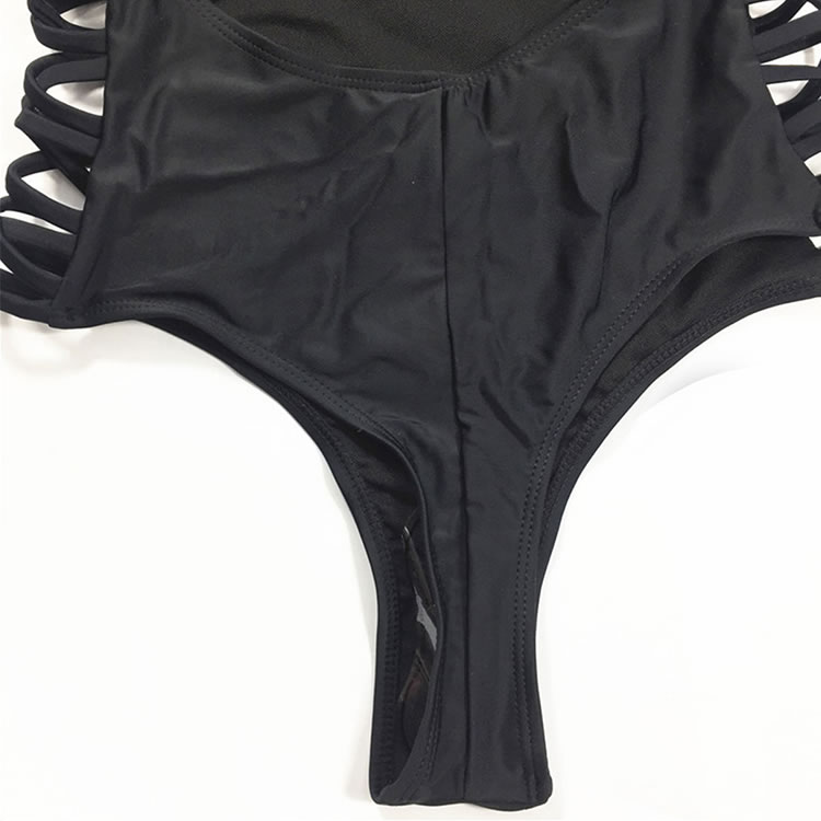 You'll be the center of attention in this striking swimsuit featuring a deep neckline with strappy detailing, open side panels with criss-cross detailing, adjustable spaghetti straps with a criss-cross back, a deep scoop back, and a cheeky cut back.