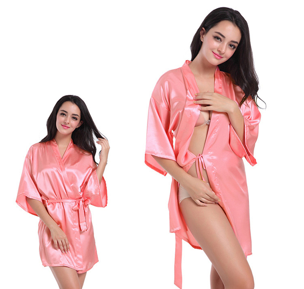 • Short-length robe extending to the hips flatters body shape; Luxurious look with a satin sheen