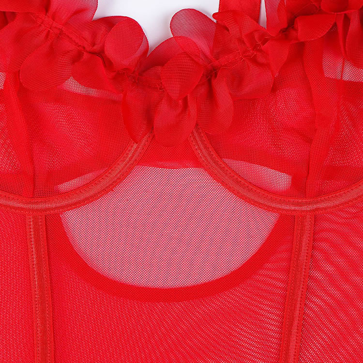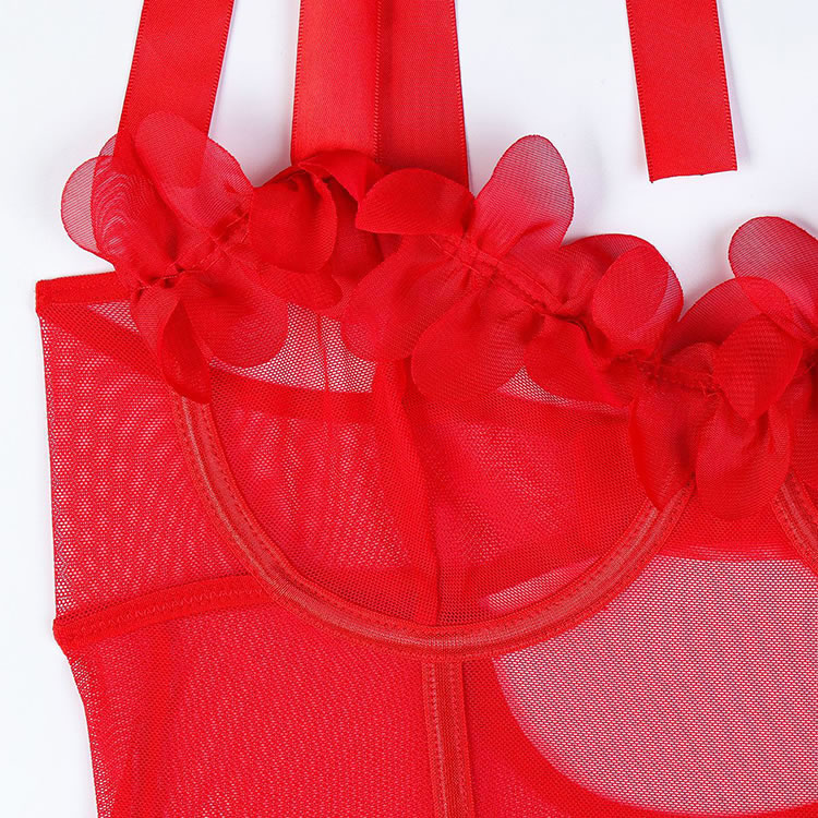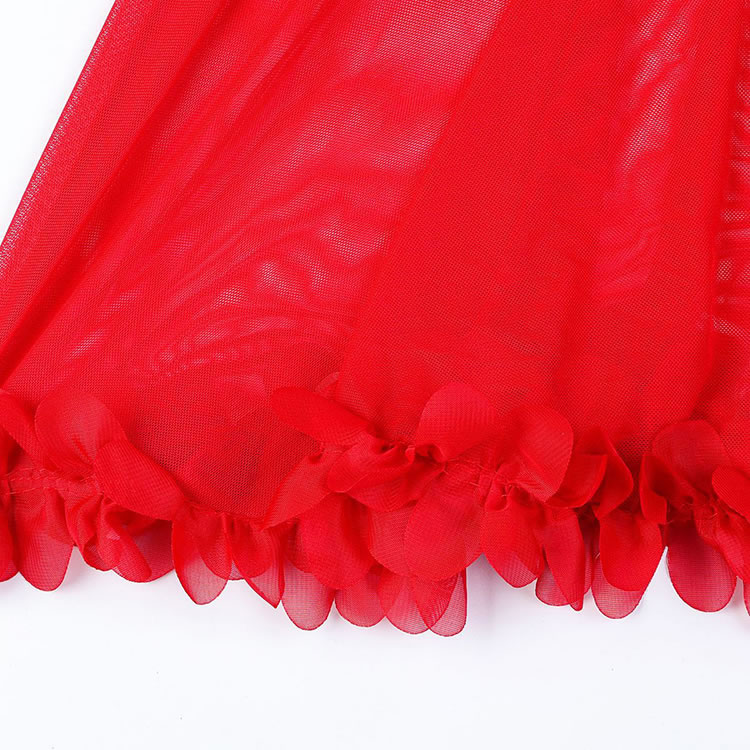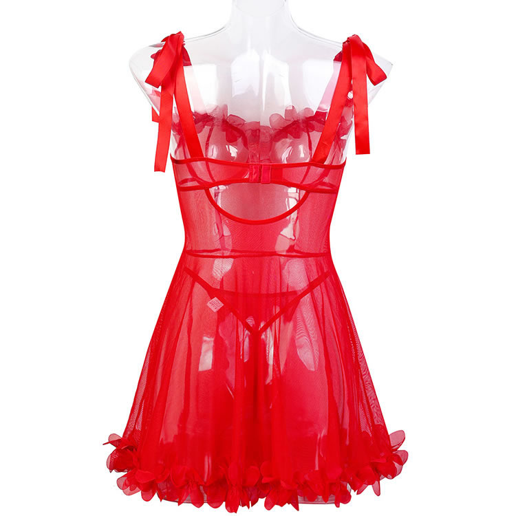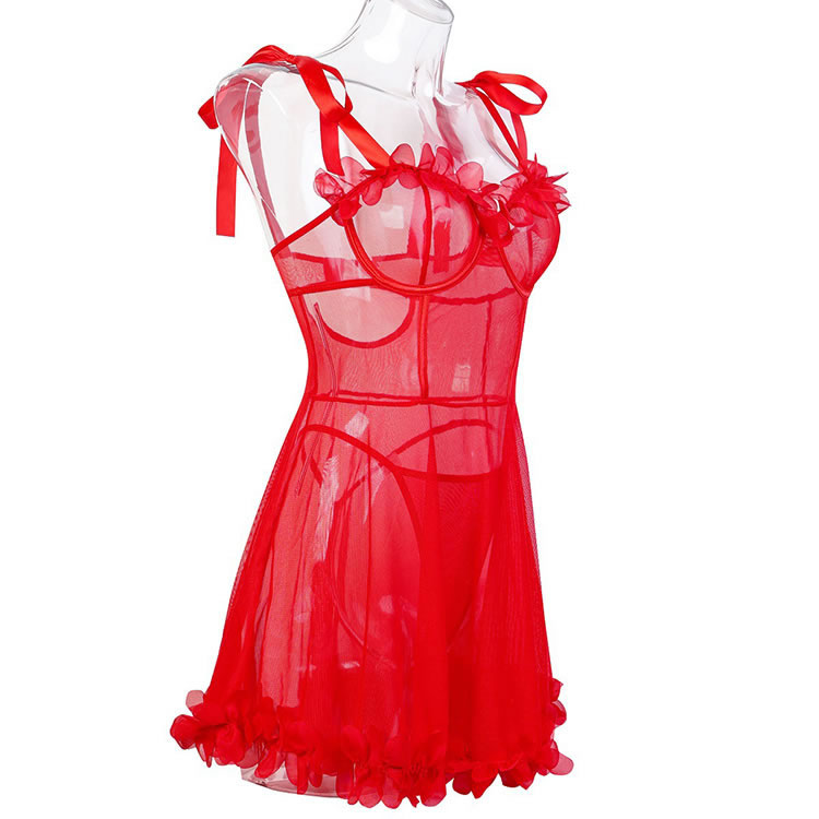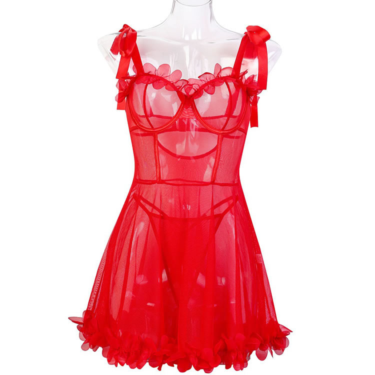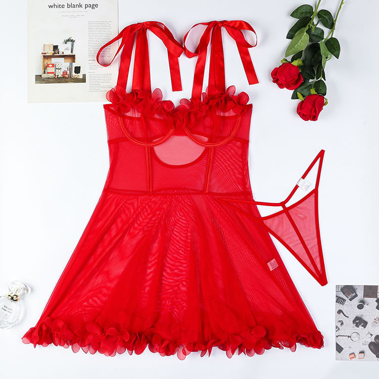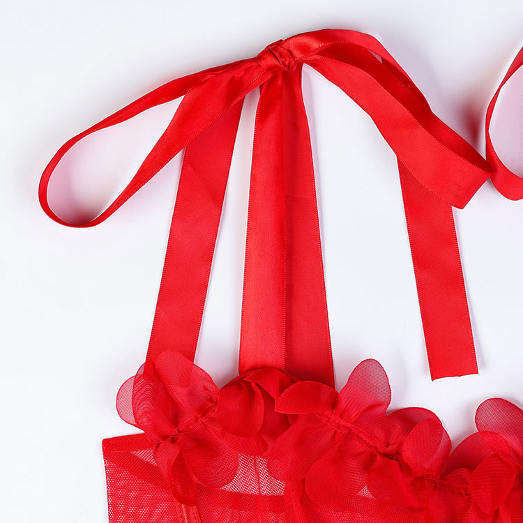 Embrace your inner confidence with our Passionate Red Lace Sheer Lingerie Set, designed to blend sensuality and elegance. The deep V-neck bra features sheer mesh detailing and is adorned with 3D red floral accents for a romantic touch. Adjustable shoulder straps with bow details offer comfort and a playful look. The matching short-style panties highlight the legs with their sheer fabric and scalloped hem. Perfect for special moments or everyday wear, this set adds a bold pop of color and charm to your lingerie collection.