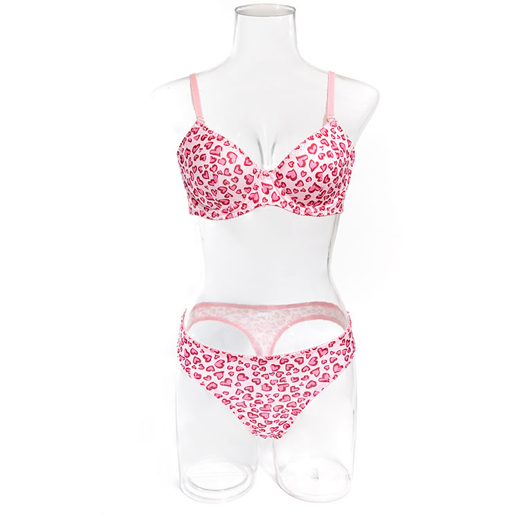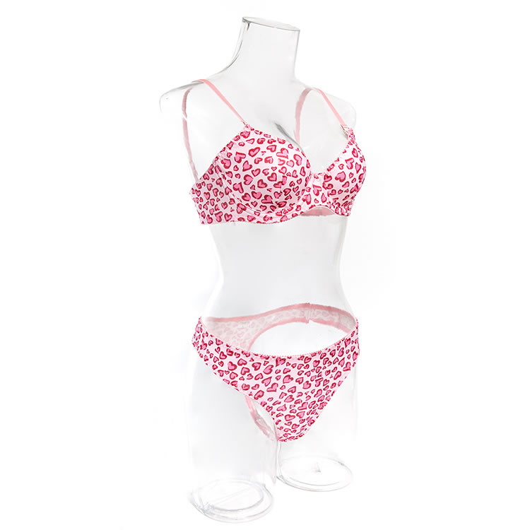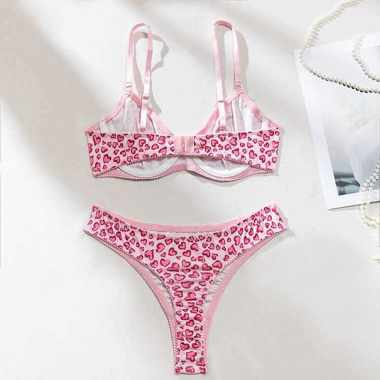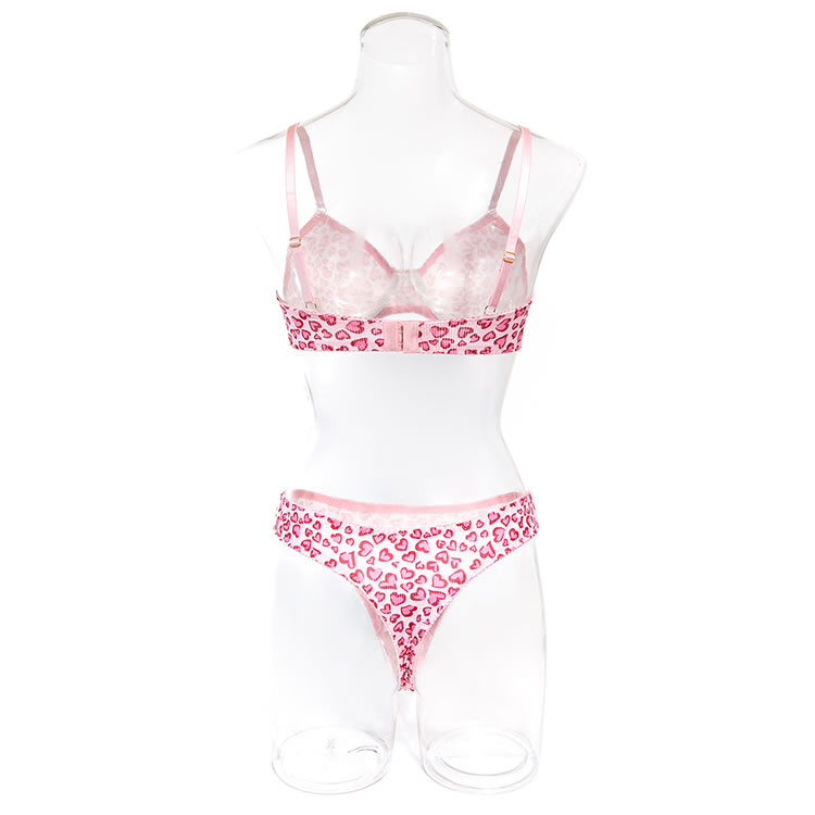 This playful heart print lingerie set is perfect for those who love a touch of whimsy in their intimates. The bra features a charming pink and white heart pattern that adds a fun and flirty vibe, while the matching panties ensure both comfort and style. The soft fabric creates a gentle and flattering fit, making it an ideal choice for anyone seeking a blend of confidence and charm.