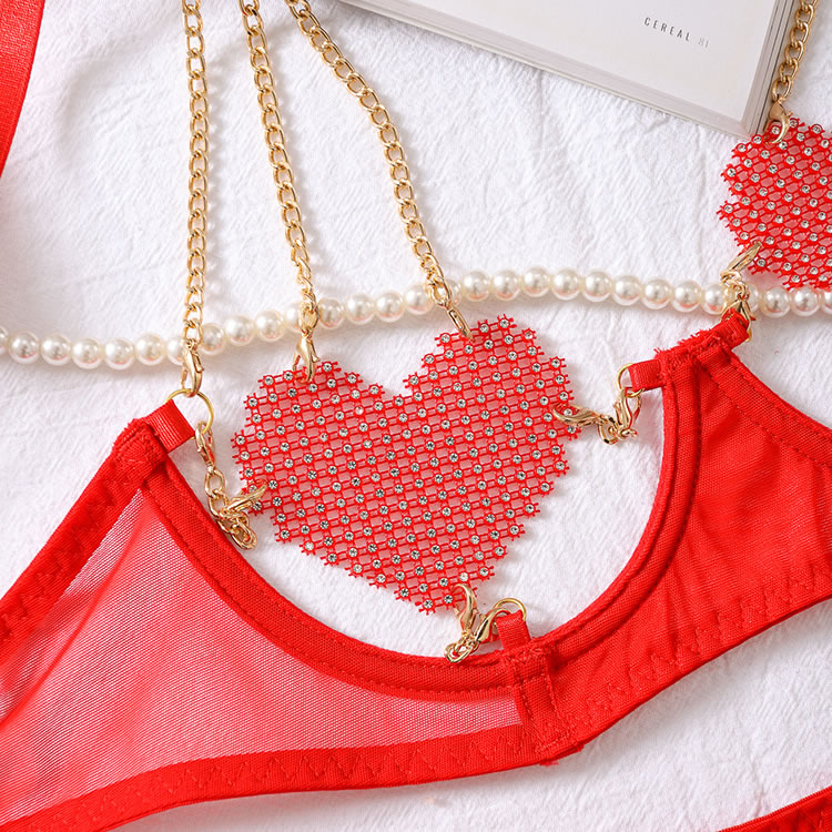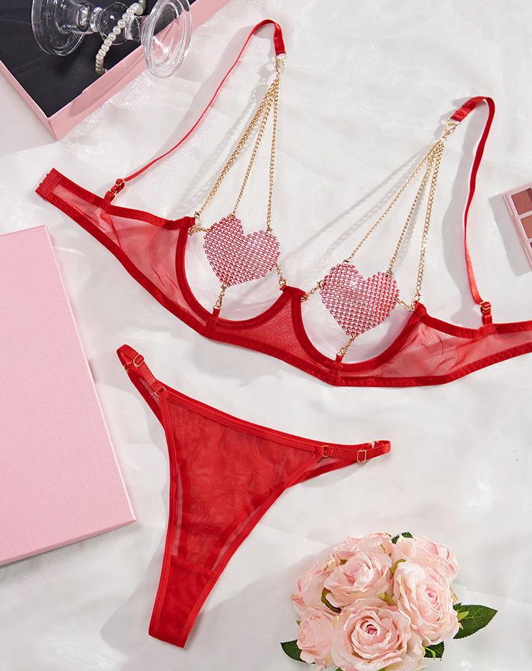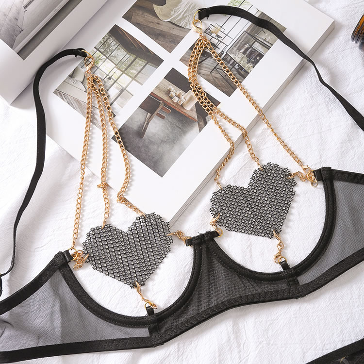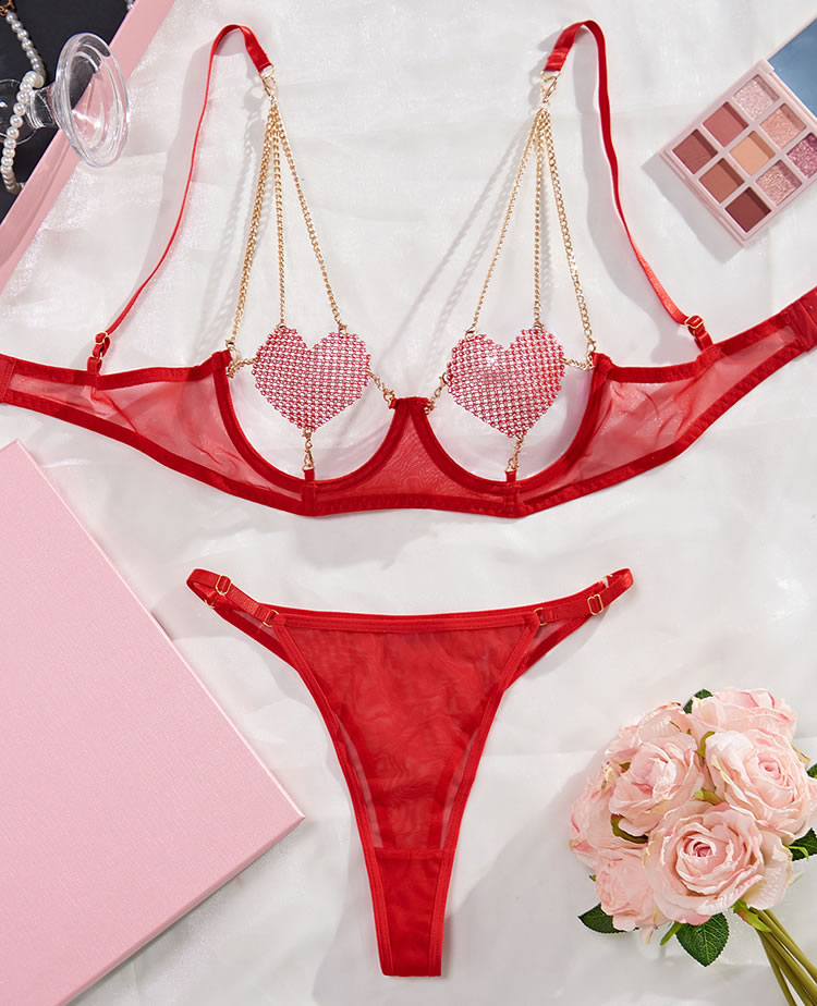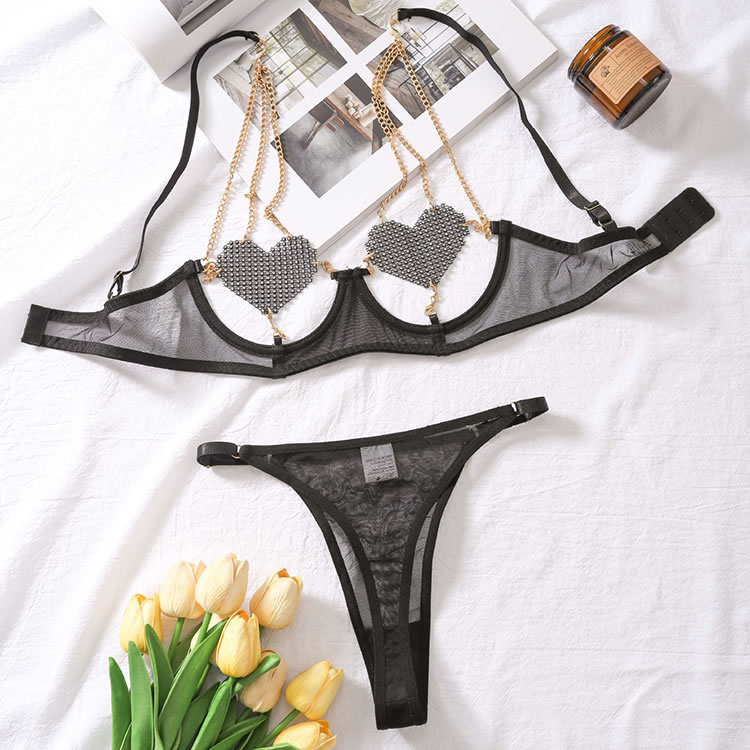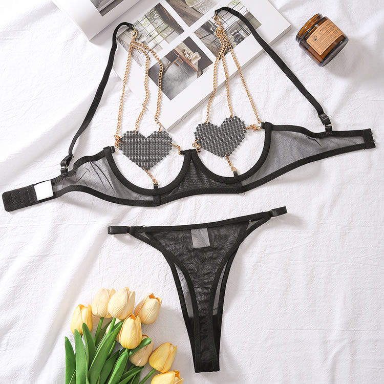 Ignite the romance with this sultry bra set featuring daring open underwire cups, adjustable spaghetti straps, and a hook and eye back closure. Complete with a matching thong panty, this set is designed to make every moment unforgettable.