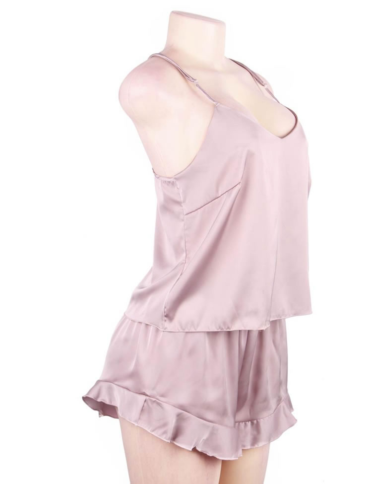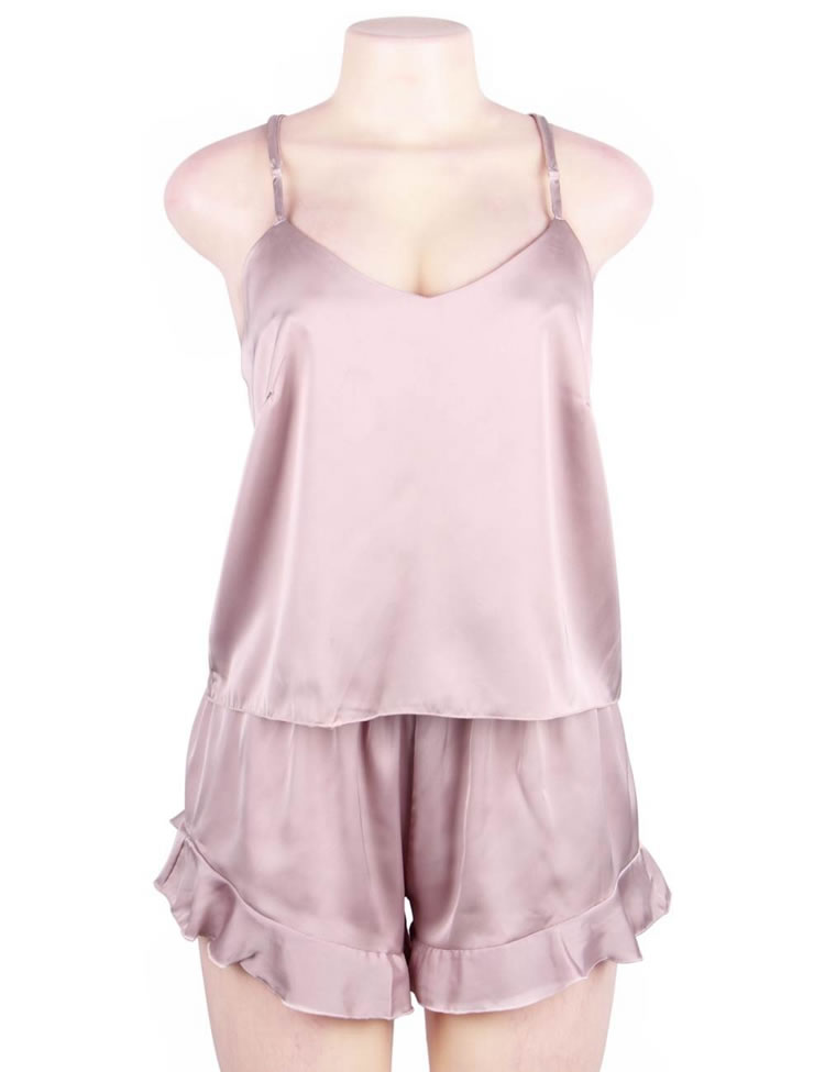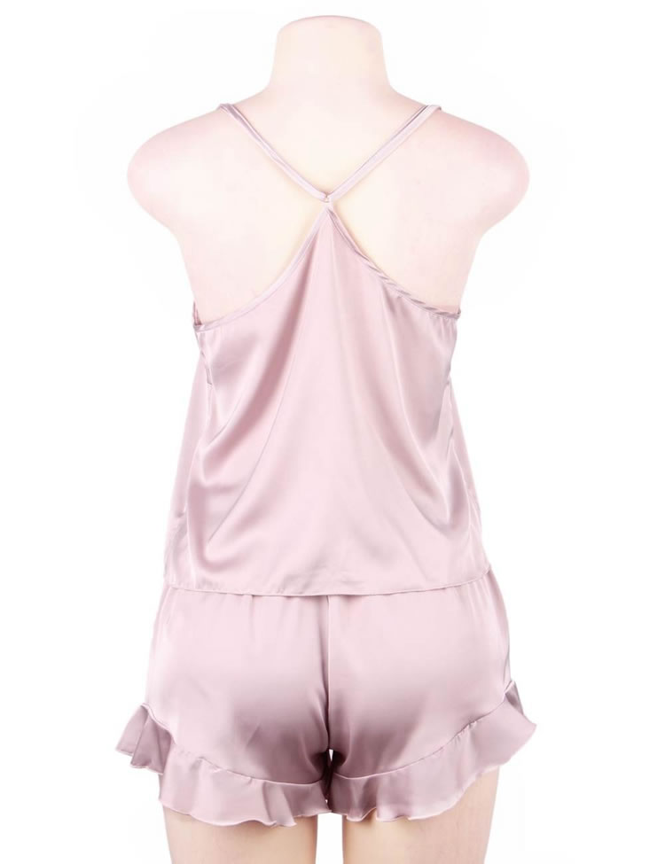 Be the sexiest bedtime babe in this cute plus size pajama set featuring satin cups, adjustable spaghetti straps, a racerback, and matching shorts with an elastic waistband, and a mini length.