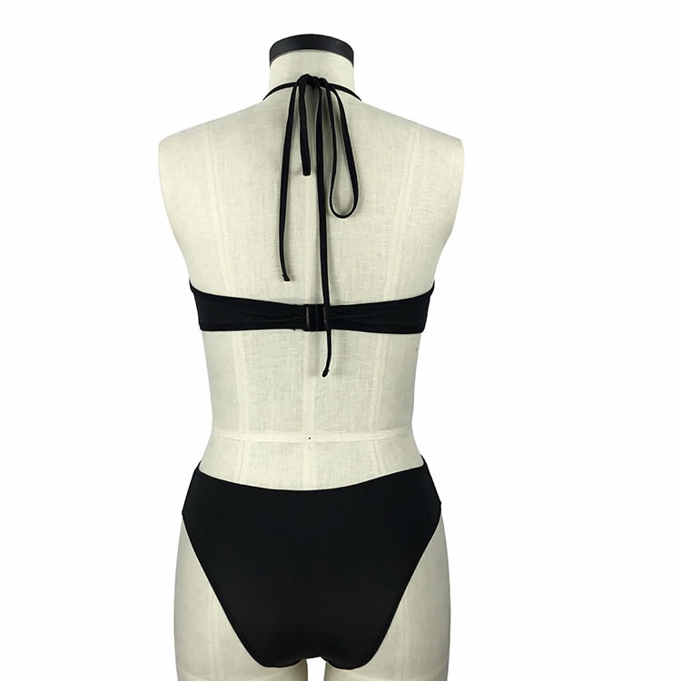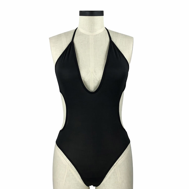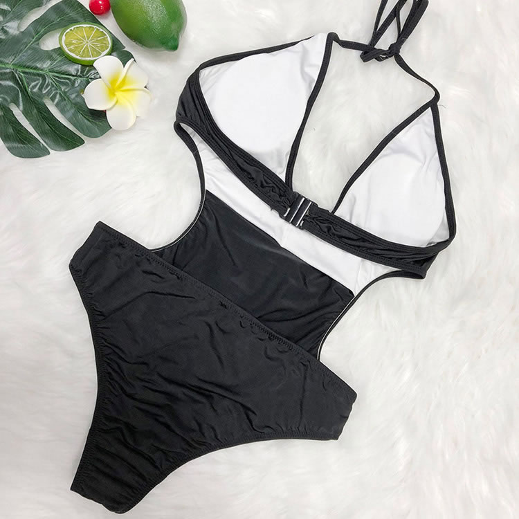 Turn heads in this exclusive plus size swimsuit featuring soft cups with removable padding, a scoop neckline, halter straps, an open back with a back hook closure, and a cheeky cut back.