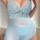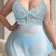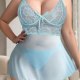 This plus-size babydoll features a delicate lace top with floral patterns and a central bow accent, offering a feminine look. The sheer mesh skirt flows gently from the waist, creating a flared silhouette that complements the body. Designed with thin, adjustable straps and a soft fabric blend, it’s made to be both comfortable and visually appealing for relaxed wear at home or special moments.