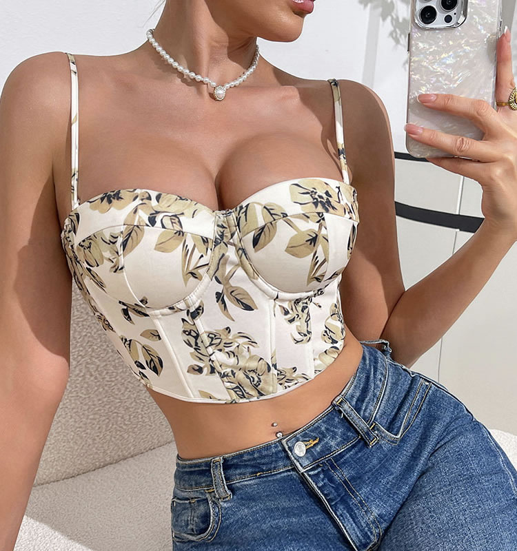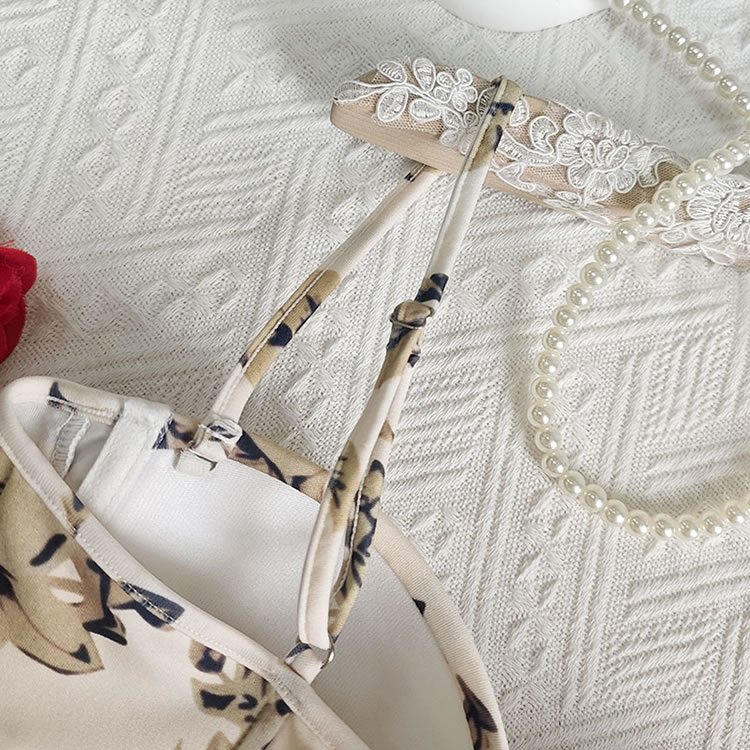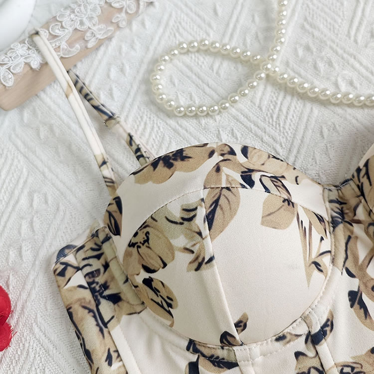This elegant bustier lingerie set features a stunning foliage print on a cream background, combining classic charm with modern allure. The sweetheart neckline enhances the décolletage beautifully, while the fitted design accentuates the figure. The adjustable straps ensure a comfortable and customizable fit, making it perfect for both intimate moments and stylish outings. The combination of intricate foliage patterns and a sleek silhouette ensures you feel confident and alluring.