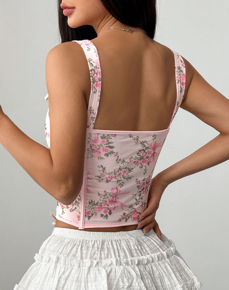 This romantic floral corset top features a charming design with delicate lace-up detailing that adds a touch of vintage flair. The adjustable straps comfort and style, making it perfect for pairing with skirts or high-waisted pants. Ideal for those who want to feel confident and fashionable in their everyday wear.