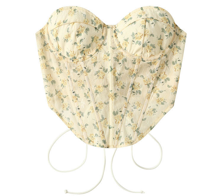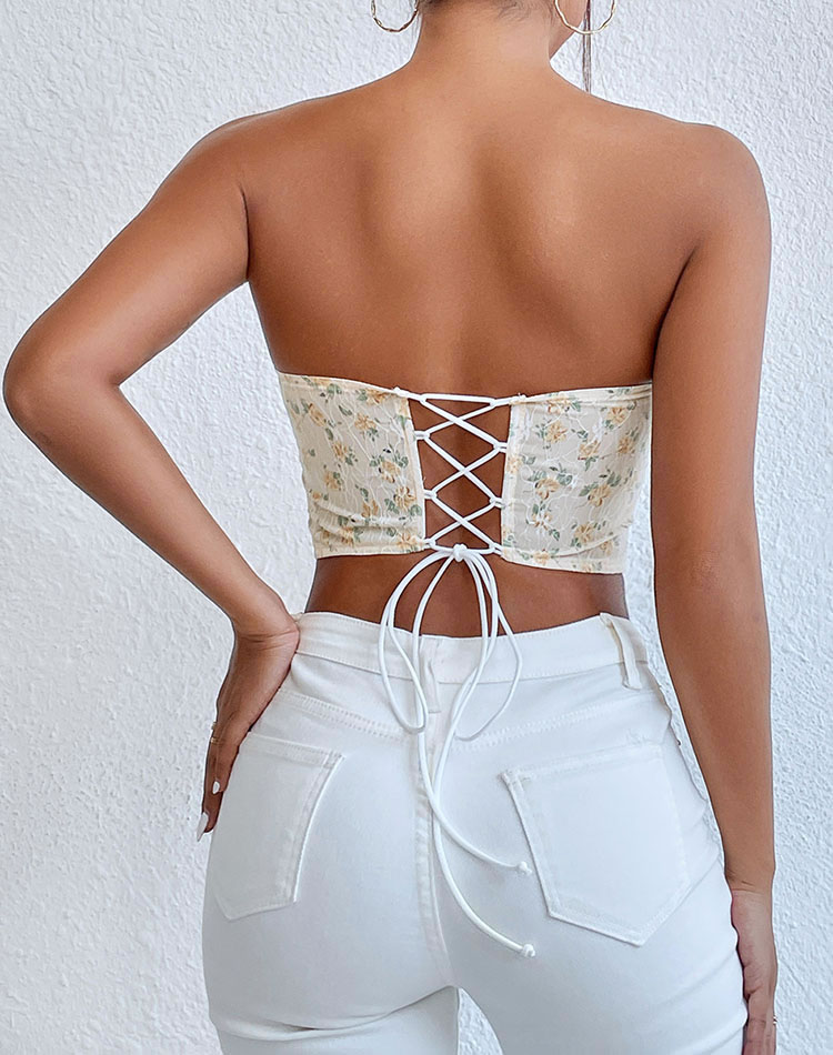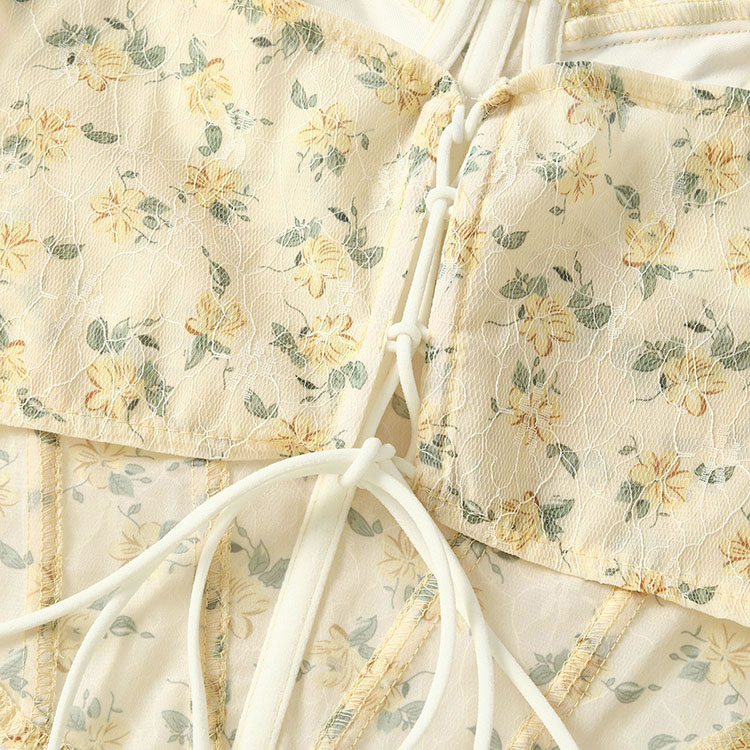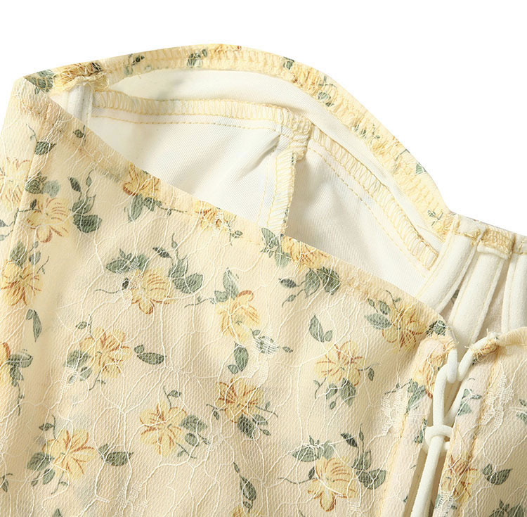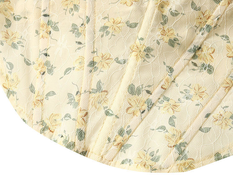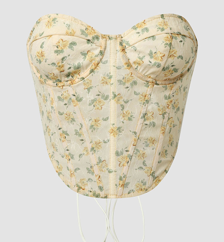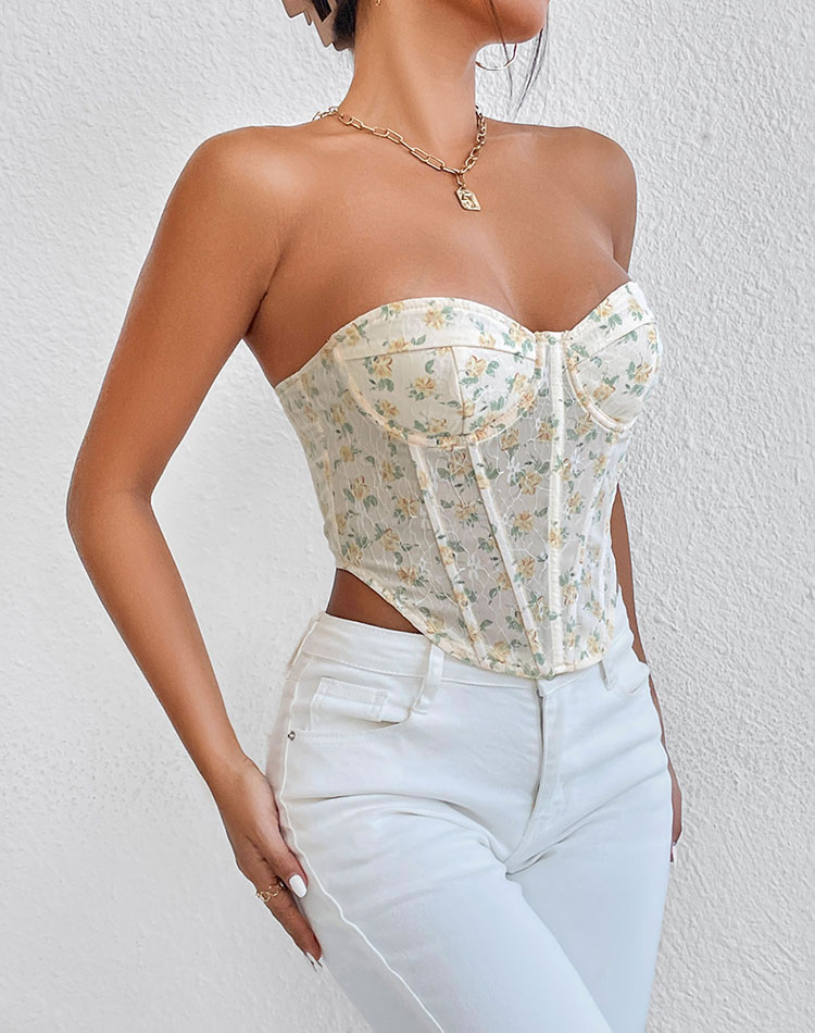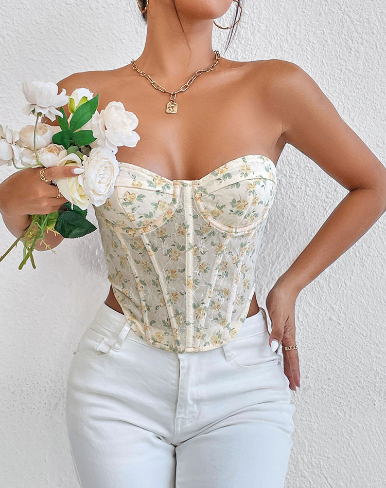 This romantic floral lace corset top features a sweetheart neckline and intricate floral printed, creating a delicate and elegant look. The structured design provides support and shape, making it perfect for both special occasions and casual outings.