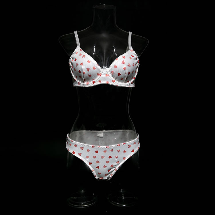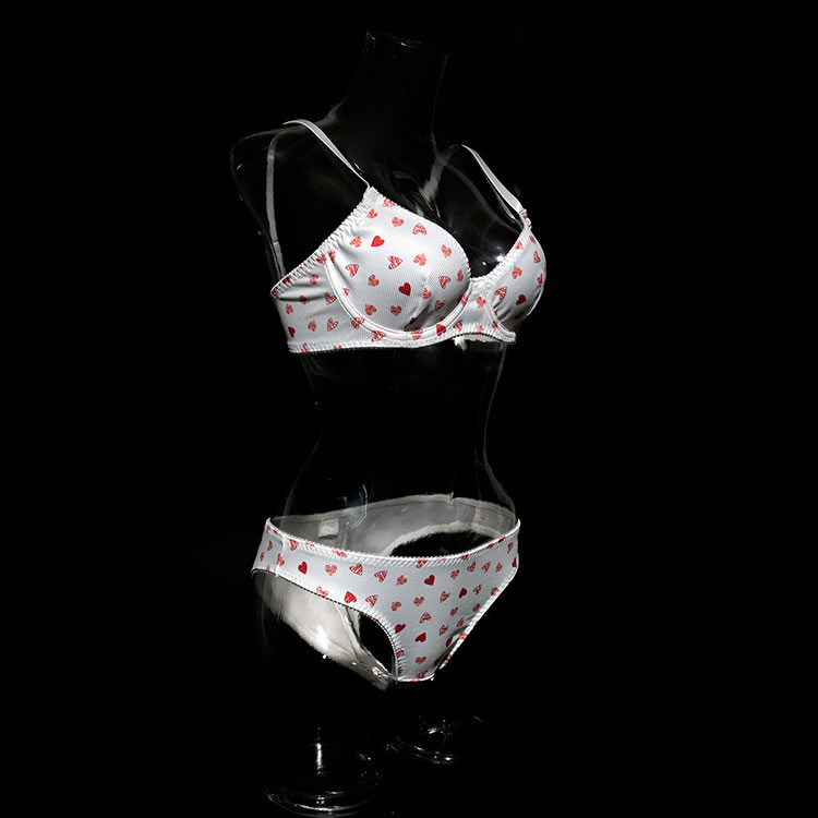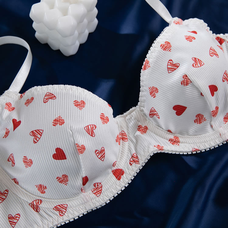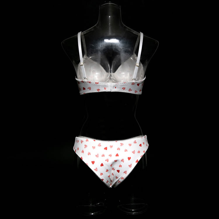 This charming lingerie set is designed to offer a blend of comfort and playful allure. The bra features a deep V-neckline with a heart pattern that adds a touch of whimsy and romance. The underwire cups provide excellent support, while the adjustable straps ensure a perfect fit. The matching high-waisted panties are crafted from the same fabric, featuring a comfortable fit and a cute heart pattern that complements the bra. The set is ideal for those seeking both style and comfort, perfect for intimate moments or special occasions.