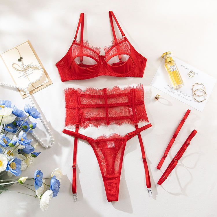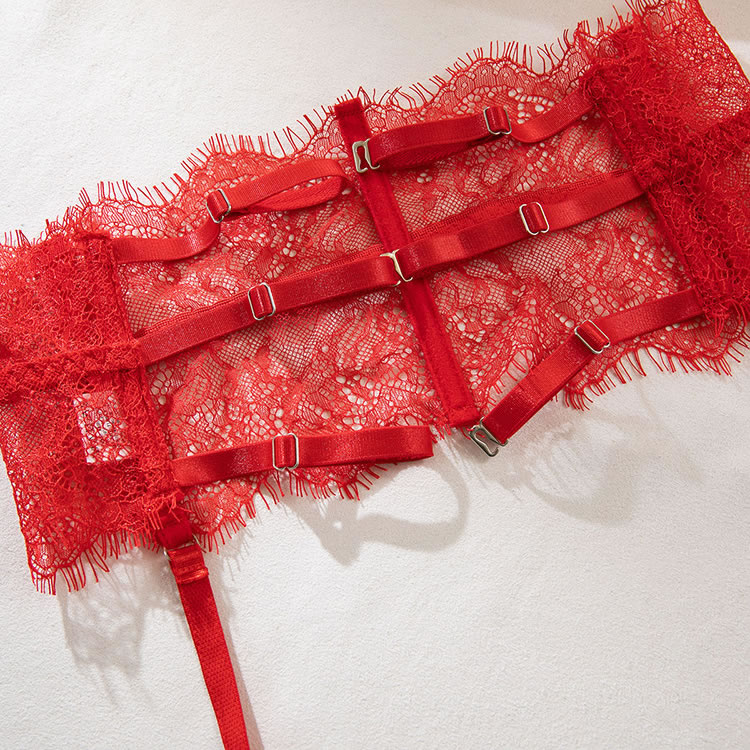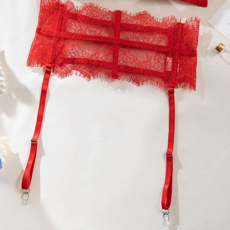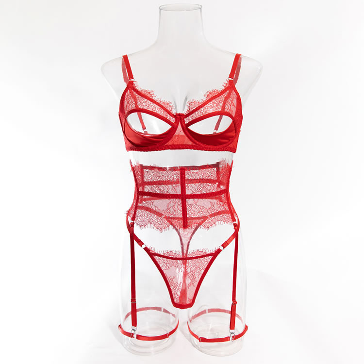 This exquisite lingerie set is designed to offer a blend of elegance and allure. The bra features a deep V-neckline with intricate lace detailing that provides both support and sophistication. The sheer mesh fabric enhances the feminine charm, while the adjustable straps ensure a perfect fit. The matching panties are crafted from the same sheer mesh with lace trim, providing a comfortable yet seductive look. The high-waisted garter belt adds an extra touch of glamour, making this set ideal for those seeking both comfort and style. Perfect for intimate moments or special occasions, this lingerie set exudes confidence and allure.