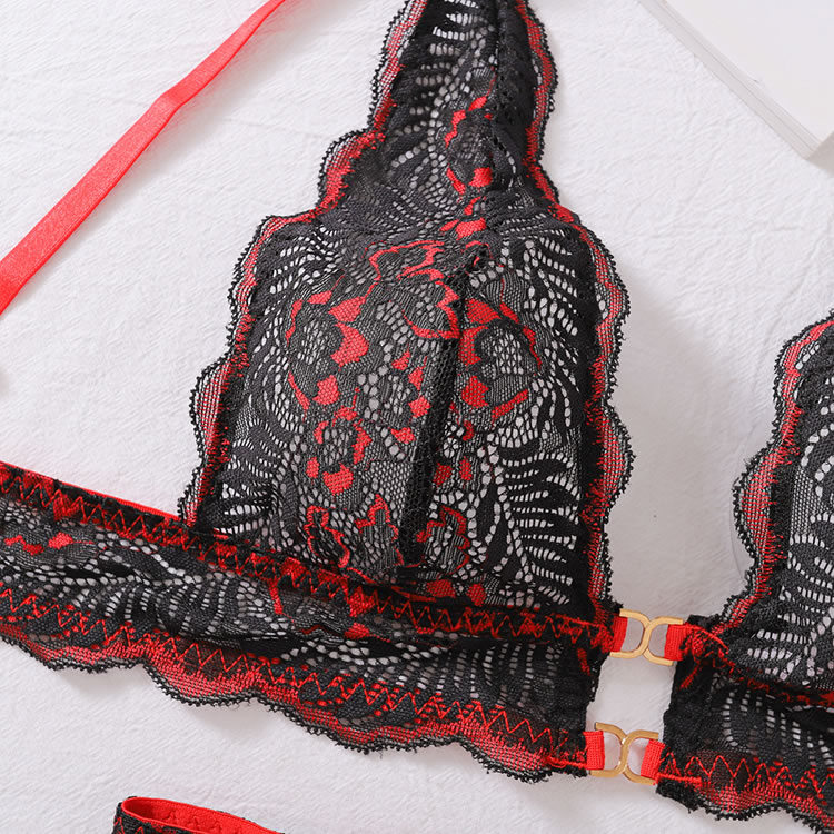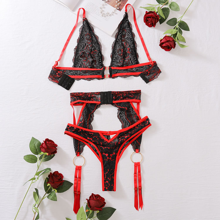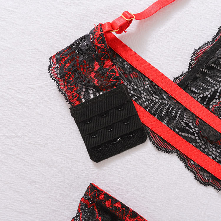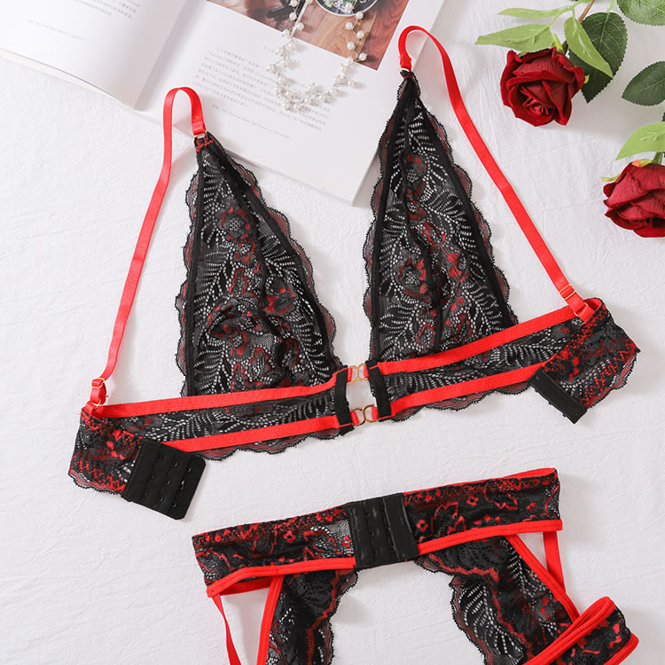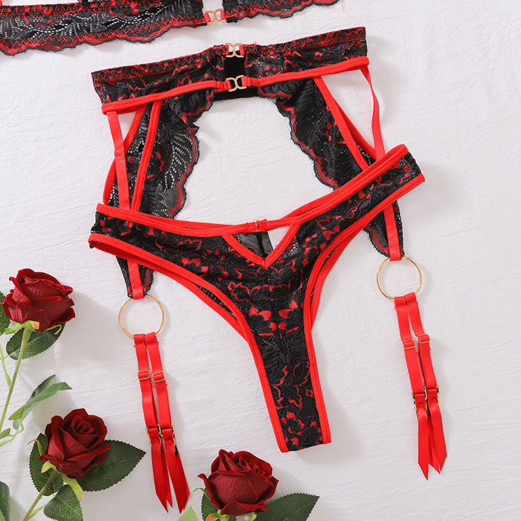 Step into a daydream with this ethereal and exclusive bra set! The combination of sheer lace, adjustable straps, and a hook and eye back closure ensures a comfortable and flattering fit. With its tantalizing black and red color options, this set adds a dash of mystery and allure. The addition of a garter belt with adjustable garter straps elevates the ensemble, offering both elegance and seduction. Complete the fantasy with the matching thong panty, creating a look that's bound to captivate and enthrall. Whether you're indulging in your own fantasies or creating new ones, this set is sure to transport you to a realm of irresistible allure and enchantment.