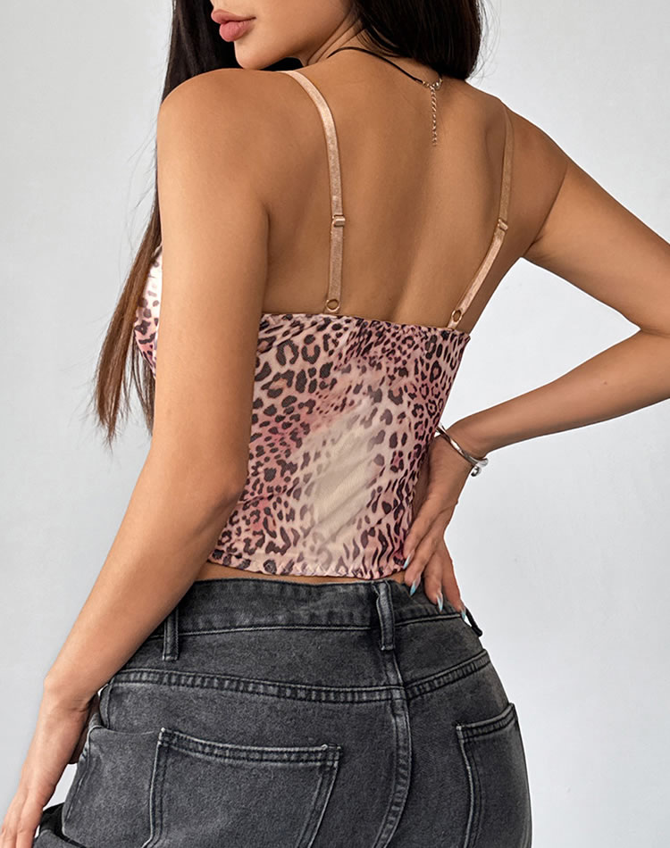 Elevate your look with this seductive animal print bustier that includes animal print detailing for added flair. The combination of soft material and striking design creates a captivating and alluring appearance. The flattering fit and adjustable straps make it an ideal choice for special occasions or as a trendy addition to your wardrobe.