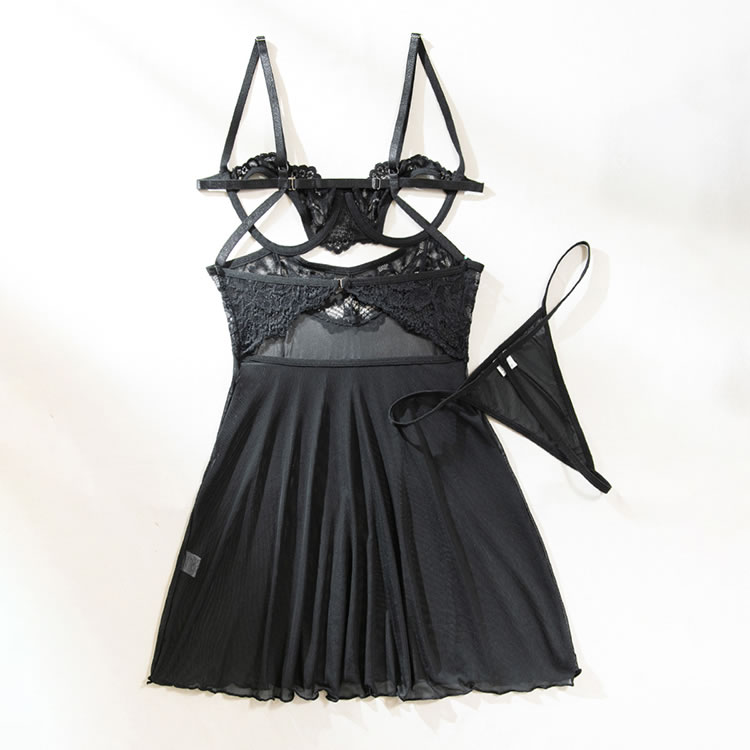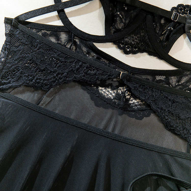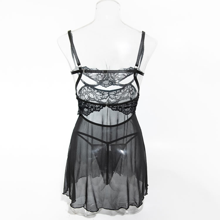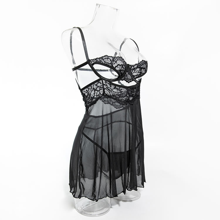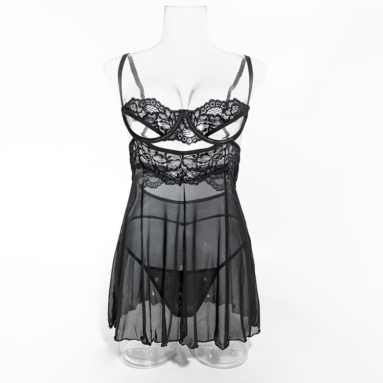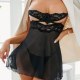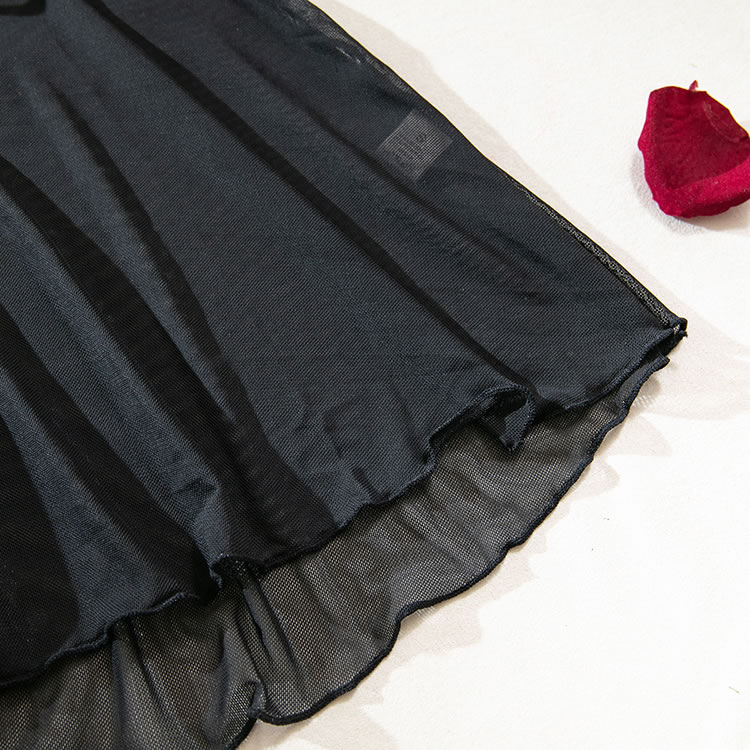 This seductive black sheer nightgown features intricate lace detailing that adds a touch of allure and sophistication. The combination of sheer fabric and delicate lace creates an elegant and eye-catching appearance. The adjustable straps ensure a comfortable fit, making it perfect for those who want to feel confident and stylish.