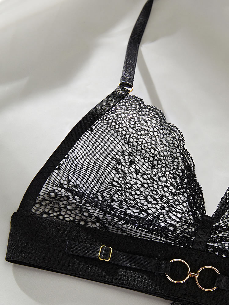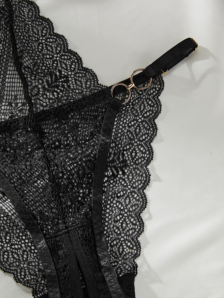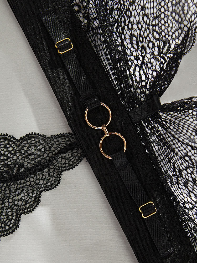 Elevate your style with this seductive sheer lingerie ensemble that boasts ring accents and elegant lace trim. The form-fitting design and decorative elements add a playful touch, while the soft mesh ensures comfort. Ideal for special occasions or as a trendy addition to your wardrobe, this set combines bold patterns with feminine charm.