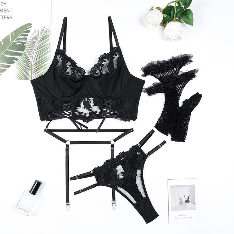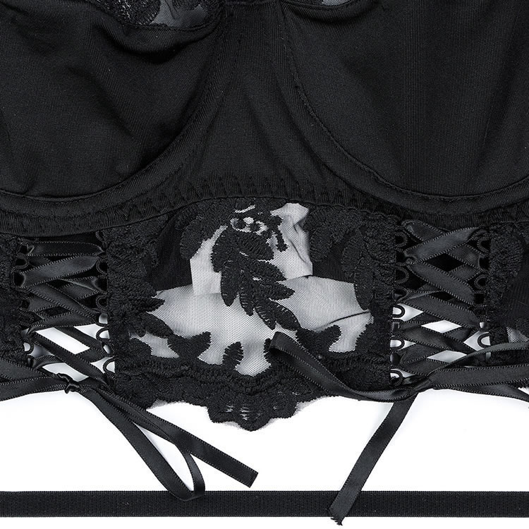 Elevate your style with this seductive sheer lingerie set that boasts lace-up detailing and elegant lace. The bra set charming design and flattering cutouts create an alluring appearance. With its supportive cups and comfortable straps, it is an ideal choice for special occasions or as a trendy addition to your wardrobe.