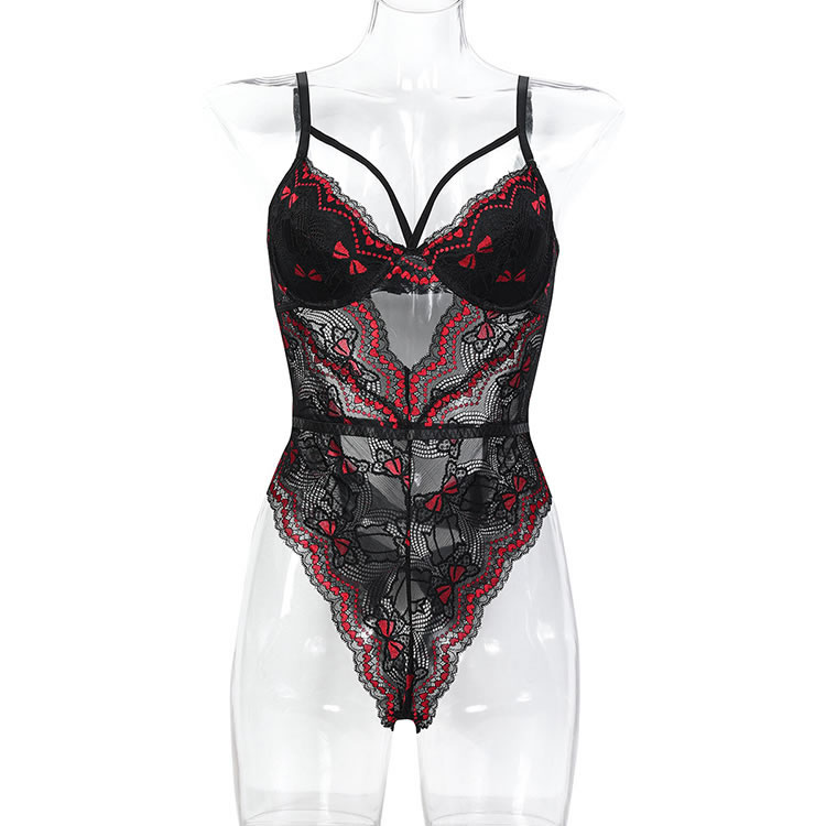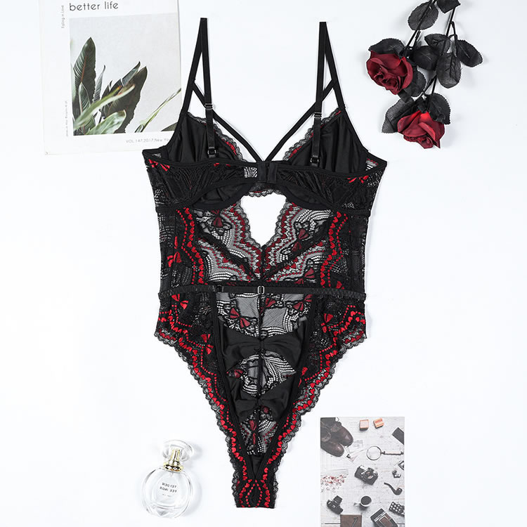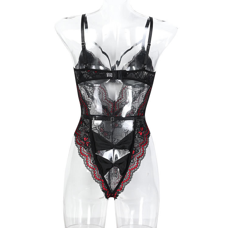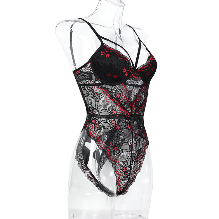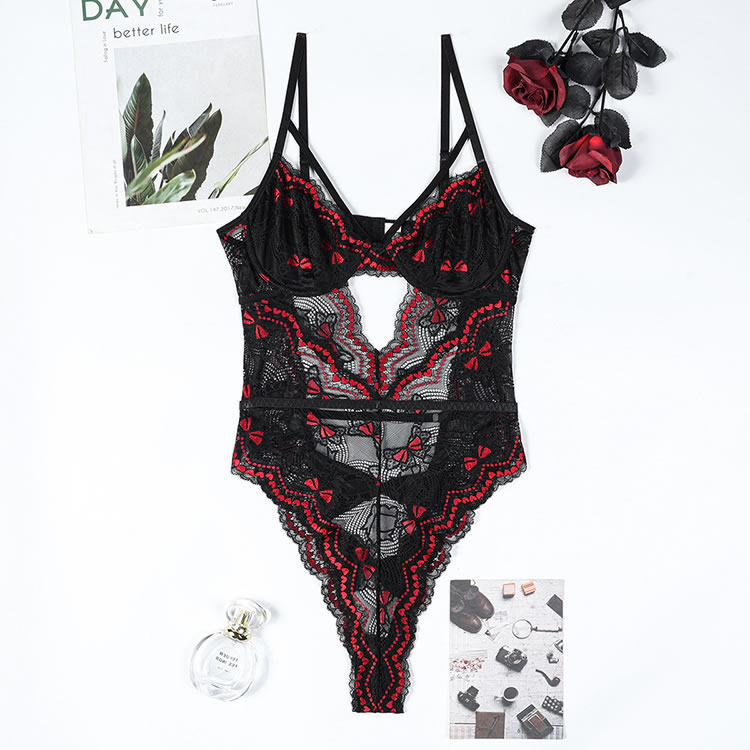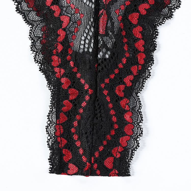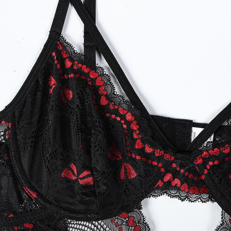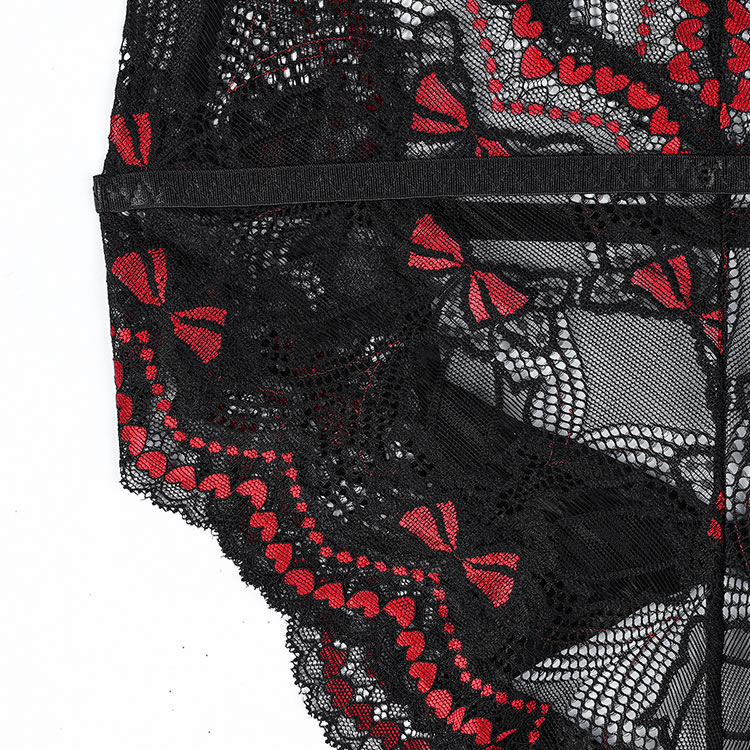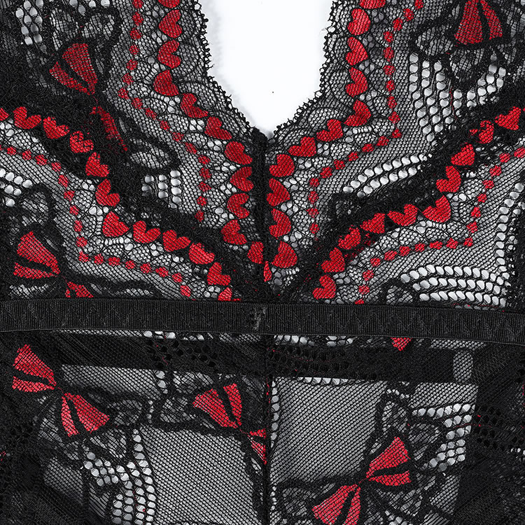 Elevate your style with this seductive sheer lingerie set that boasts heart-shaped details and elegant lace. The bodysuit's charming design and flattering fit create an alluring appearance. With its supportive cups and comfortable straps, it is an ideal choice for special occasions or as a trendy addition to your wardrobe.