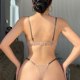 This sheer lingerie set features a delicate floral embroidery pattern with subtle detailing across both the bra and thong. The bra has a structured design with thin straps and a central clasp for support, while the back offers minimal coverage with a clean silhouette. The matching thong includes a low-rise fit and soft elastic edges for comfort. Designed to be worn under clothing or as a bold statement piece, this set blends modern style with intricate craftsmanship.