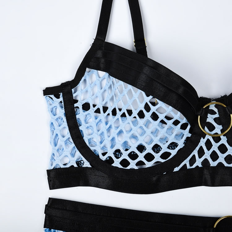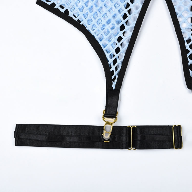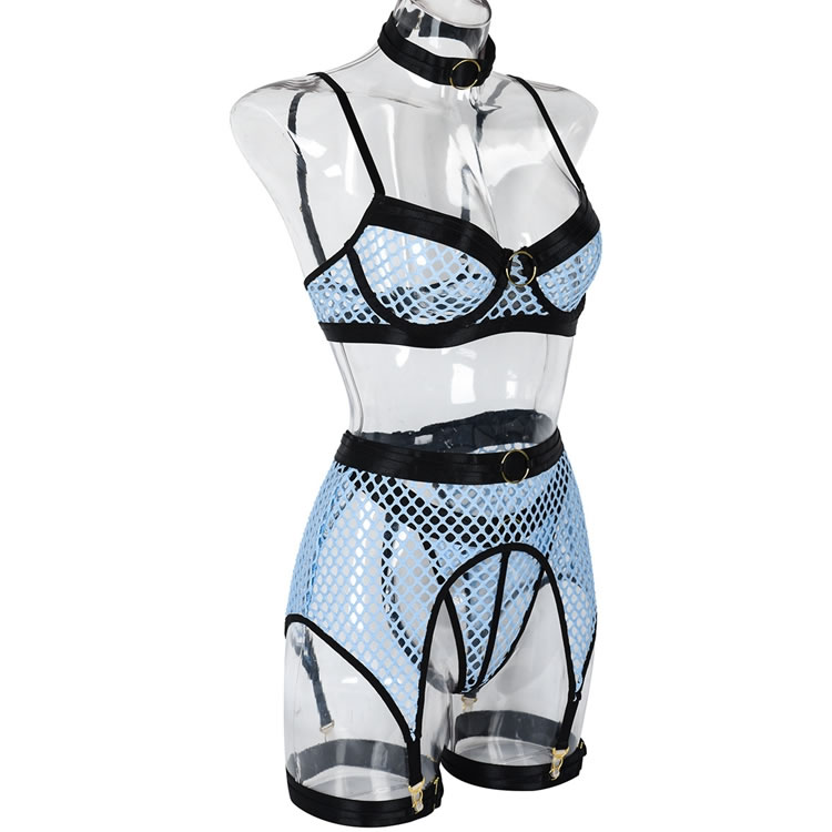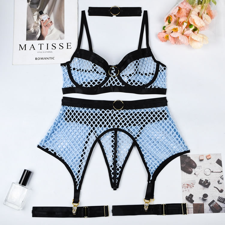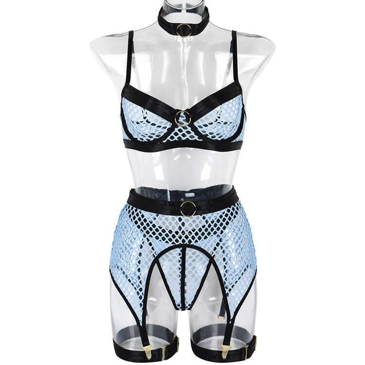 Make a statement in this tantalizing bra set featuring sheer underwire cups, adjustable shoulder straps, a hook and eye back closure, a matching garter belt with garter straps, wraparound leg garters, and a matching panty with a thong cut back.
