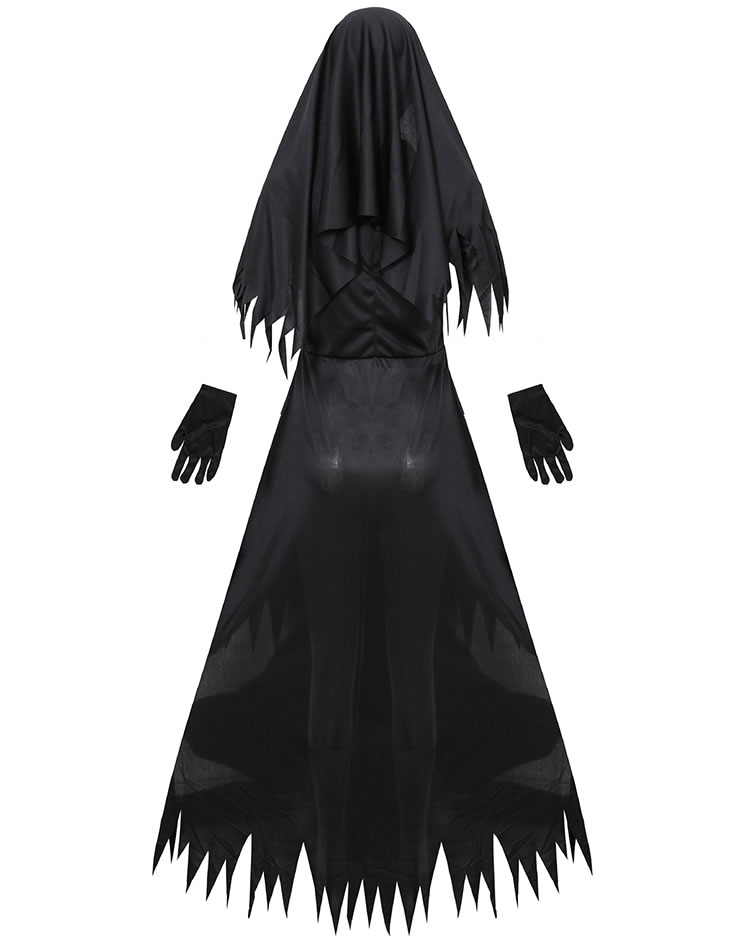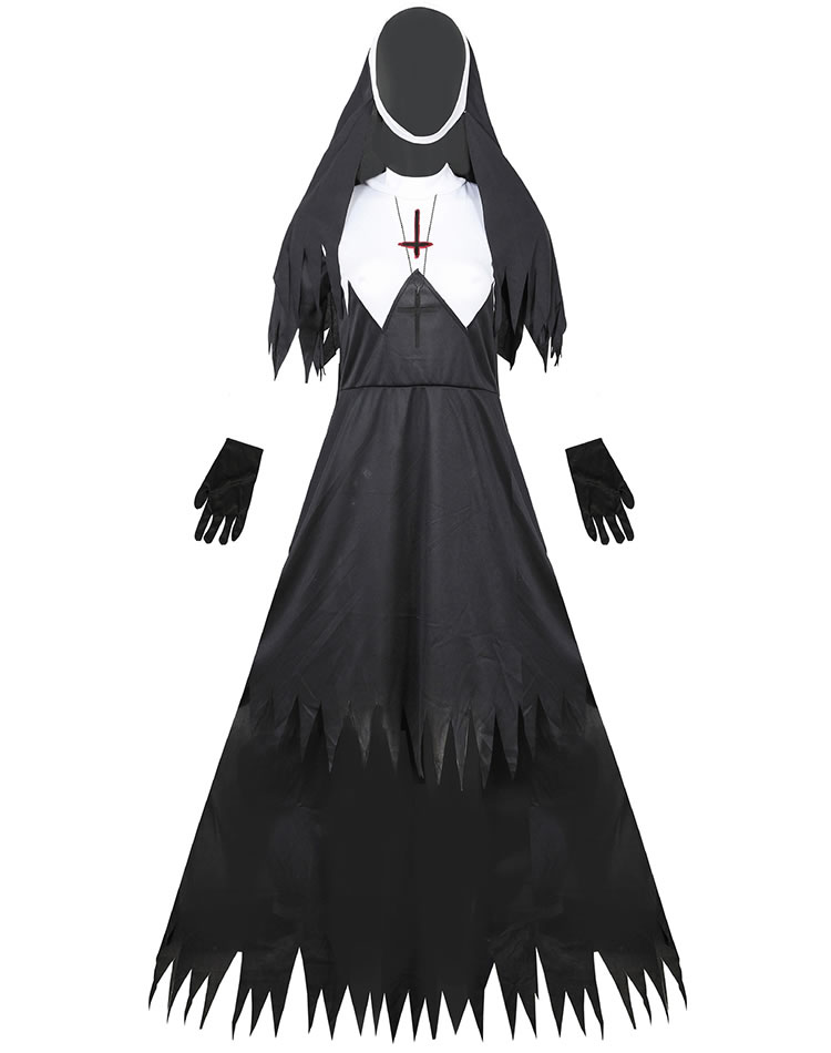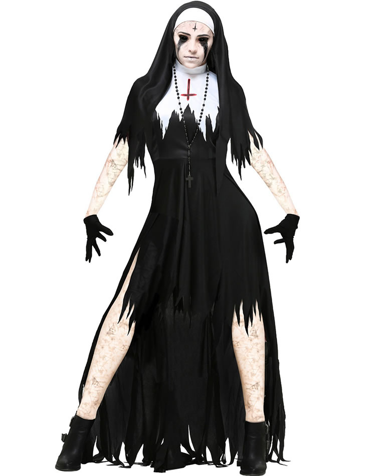 Fall on your knees, and pray for forgiveness in this Sinister Act costume featuring a black dress, a black gloves, a necklace, and a nun habit. (Shoes not included.)