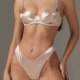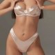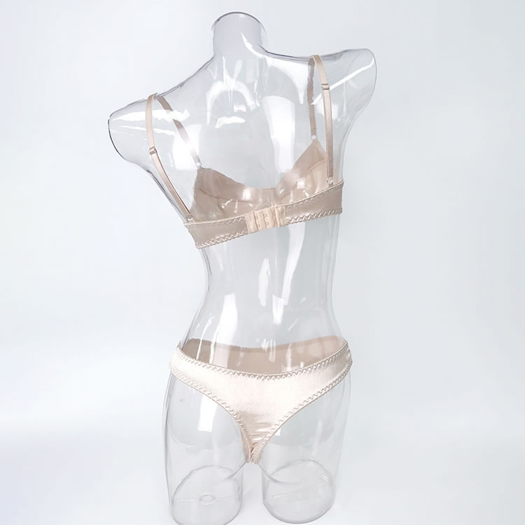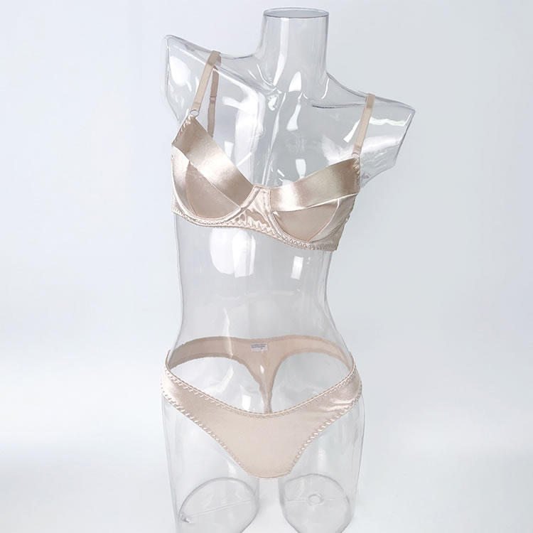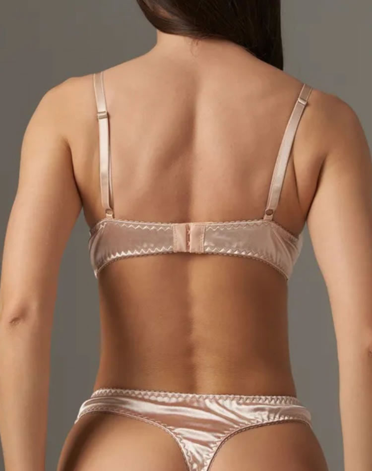 This sleek satin lingerie set features a soft, smooth finish with delicate zigzag stitching along the edges for a refined touch. Designed with a flattering sweetheart neckline and adjustable straps, the bra offers gentle support while maintaining a comfortable fit. The matching thong showcases a minimalist cut with a clean silhouette, perfect for those who appreciate understated elegance. Ideal for everyday wear or special moments, this set combines comfort with subtle style.