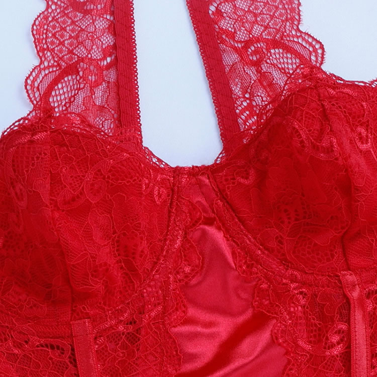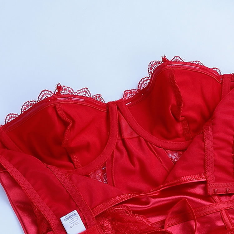Show off your fiery curves in this irresistible chemise set, featuring soft lace underwire cups and a sultry high choker neckline. The hook-and-eye back closure with a keyhole adds a touch of allure, while the sheer lace bodice with opaque panels enhances your silhouette. Complete with adjustable garter straps and included thigh-high stockings, this set is designed to turn up the heat.
