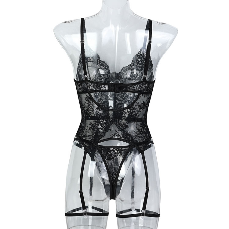 The set is completed with adjustable garters and a matching lace thong, making it perfect for pairing with your favorite stockings. Ideal for romantic evenings, special occasions, or adding an exquisite piece to your lingerie collection.