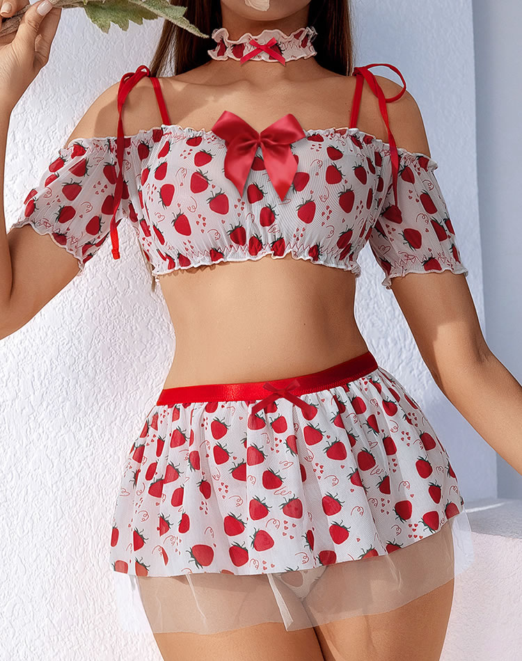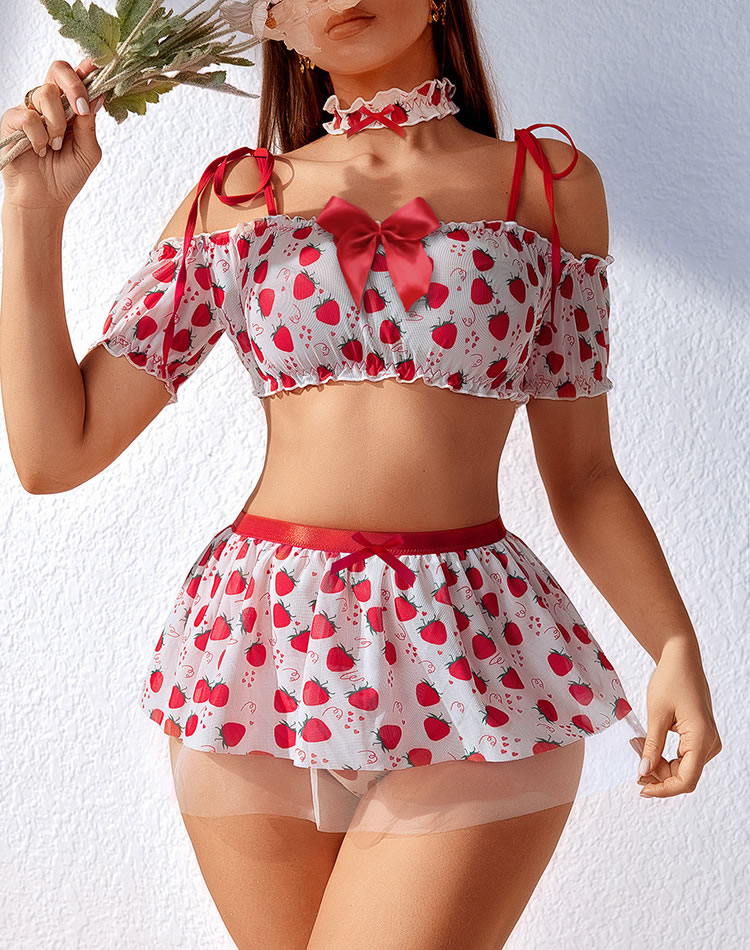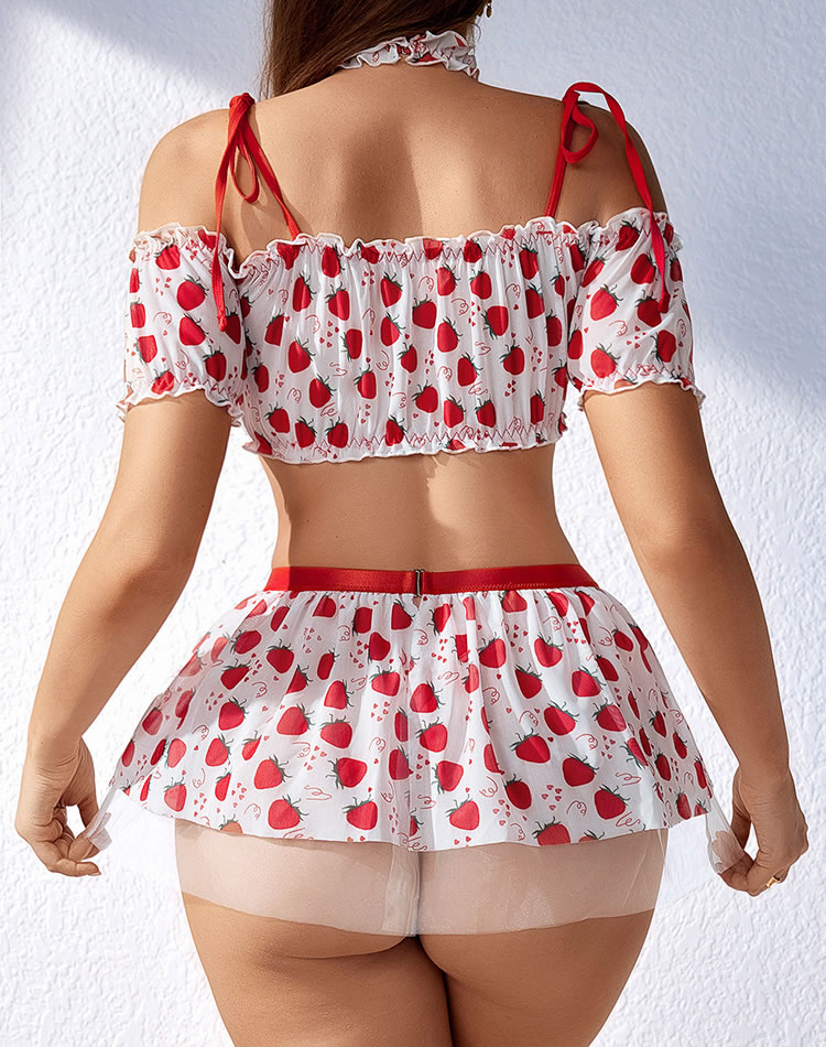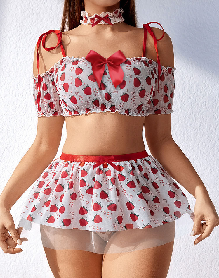 Delight in romance with our Strawberry Fields Bra and Skirt Set. This enchanting ensemble features a charming bra and skirt adorned with delicate details, crafted from soft fabric for comfort and elegance. Perfect for special occasions or intimate evenings, it enhances your allure with a touch of sweetness. Embrace beauty and sophistication with this captivating addition to your lingerie collection.