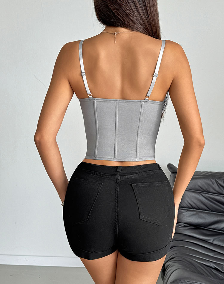 Elevate your style with this stylish gray bustier adorned with ruffle details. The soft fabric provides comfort and support, a hook and eye front closure. The combination of the ruffled neckline and bow accentuates the bust beautifully, making it a standout piece for both casual and special occasions.