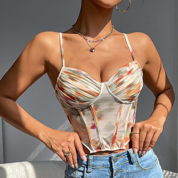 Elevate your bustier collection with this stylish tie-dye top that cinches at the waist for a flattering fit. The eye-catching design and comfortable straps ensure both style and functionality, making it an ideal choice for those who want to feel chic and cool during their summer adventures.