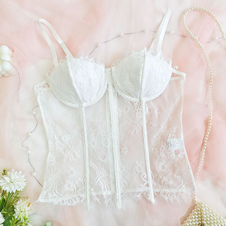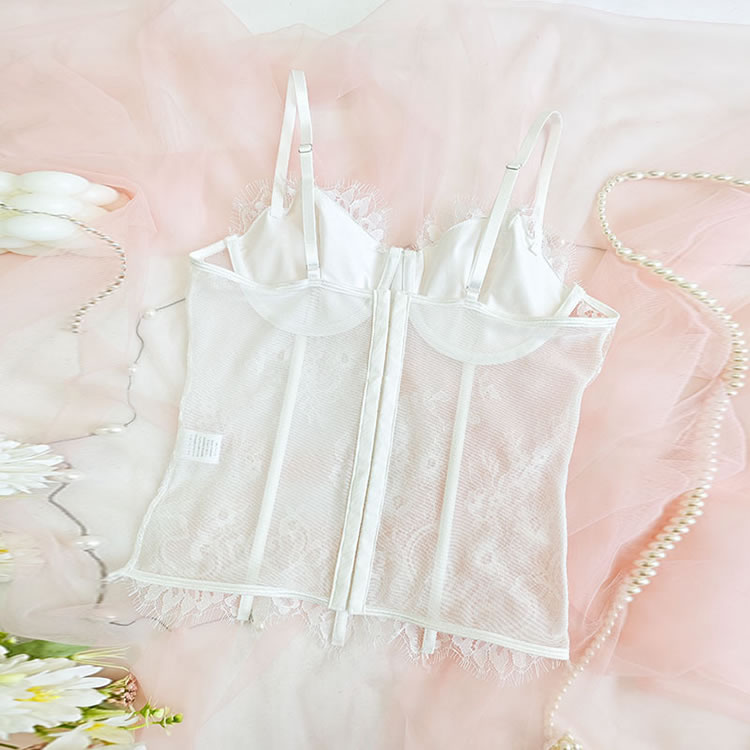 This elegant white bustier lingerie set is designed to exude sophistication and charm. The intricate lace detailing at the top adds a touch of elegance, while the sheer mesh panel enhances the overall allure. The fitted design accentuates the figure beautifully, making it perfect for both intimate moments and stylish outings. The adjustable straps ensure a comfortable and customizable fit, ensuring you feel confident and alluring.
