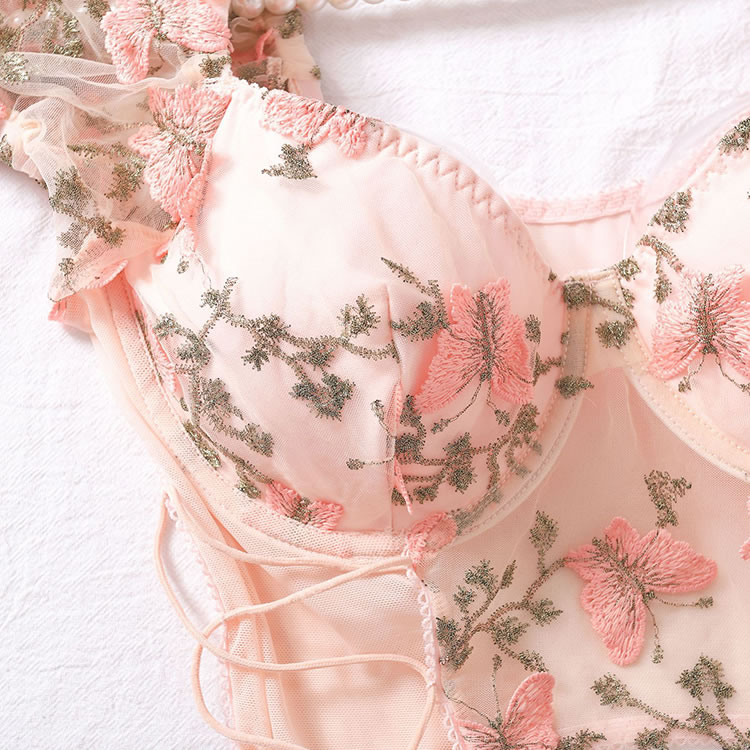 Surprise your lover with this enticing mesh bra set. The underwire cups are adorned with intricate embroidery, while the sheer lace and mesh underbust band adds a touch of elegance. This set includes a matching panty, perfect for an alluring and intimate evening.