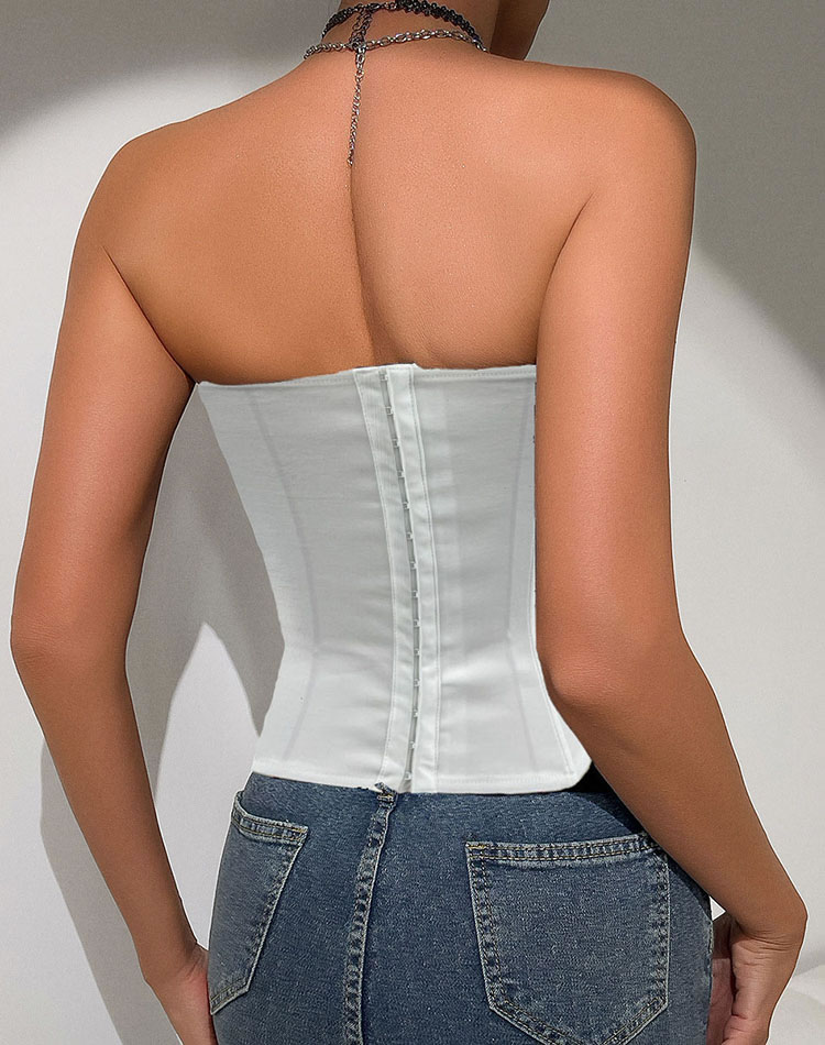 Elevate your style with this elegant white bustier top adorned with a black tie. The structured fit and sweetheart neckline create a sophisticated yet playful look, ideal for those who want to make a statement.