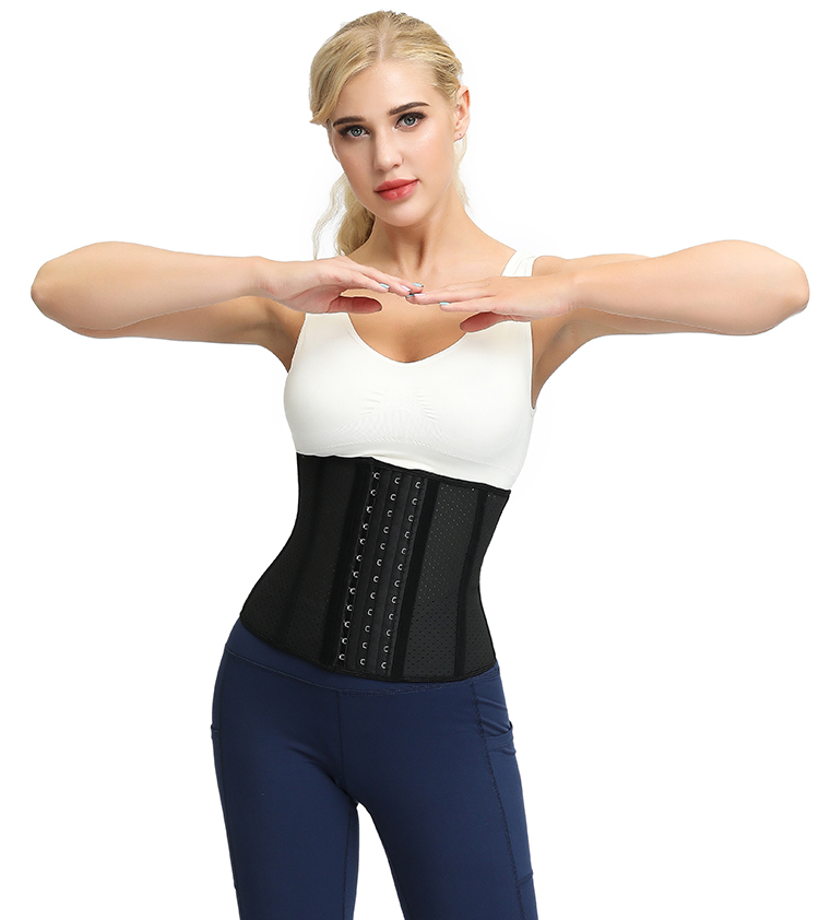 The Ventilated Waist Training Corset is made of high compression durable latex material giving you a high resistance to slim curve. The material is covered evenly with small holes which allow your skin to breathe. It will also works for LONG TORSO. It helps to reduce 3-5 inches in waist when you wear it. With the 3 Hook-and-Eye front closure, the corset is adjustable with the changes of the waistline and exercise intensity, while instant shaping and slimming your body. The front hooks are large size and extra robust and capable of providing the support with no accidental breakup. It supports your posture perfectly and prevents back pain and injuries during workouts.