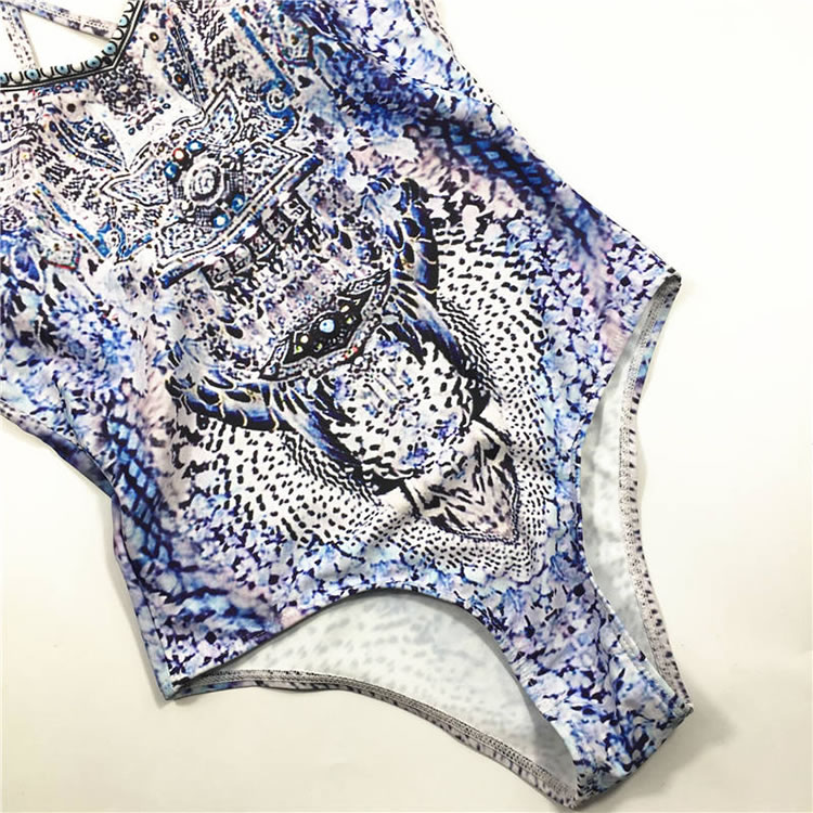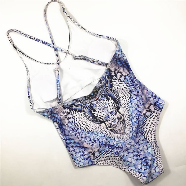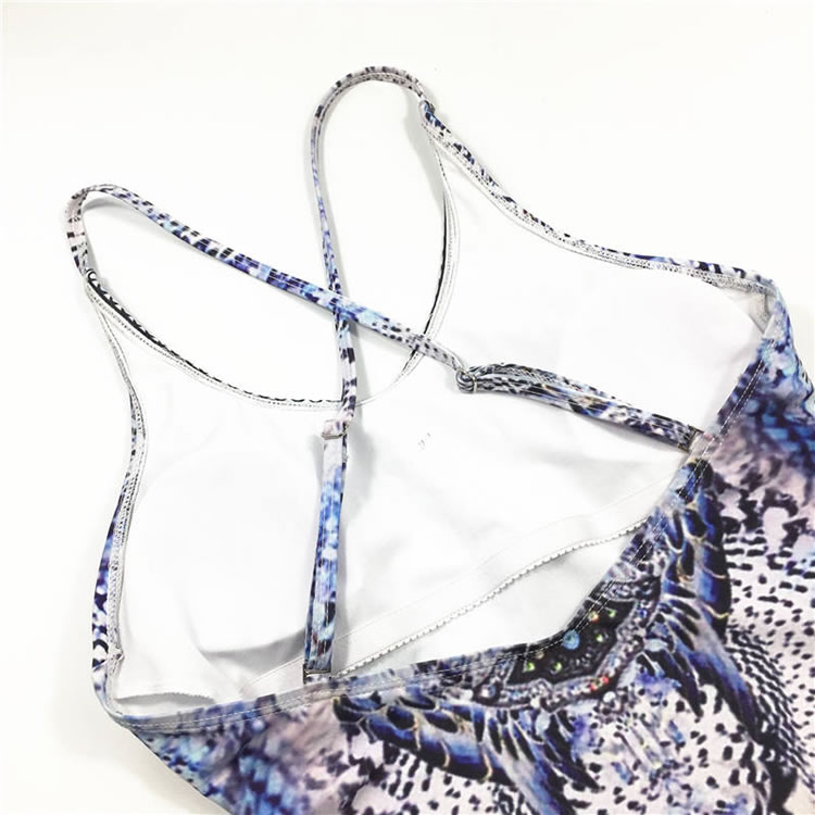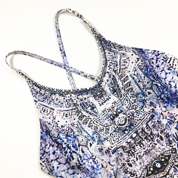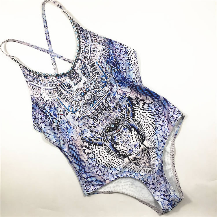 Catch everyone's eye at the beach in this tribal printed swimsuit featuring a deep V-neckline, adjustable criss-cross spaghetti straps, high cut sides, and a cheeky cut back.