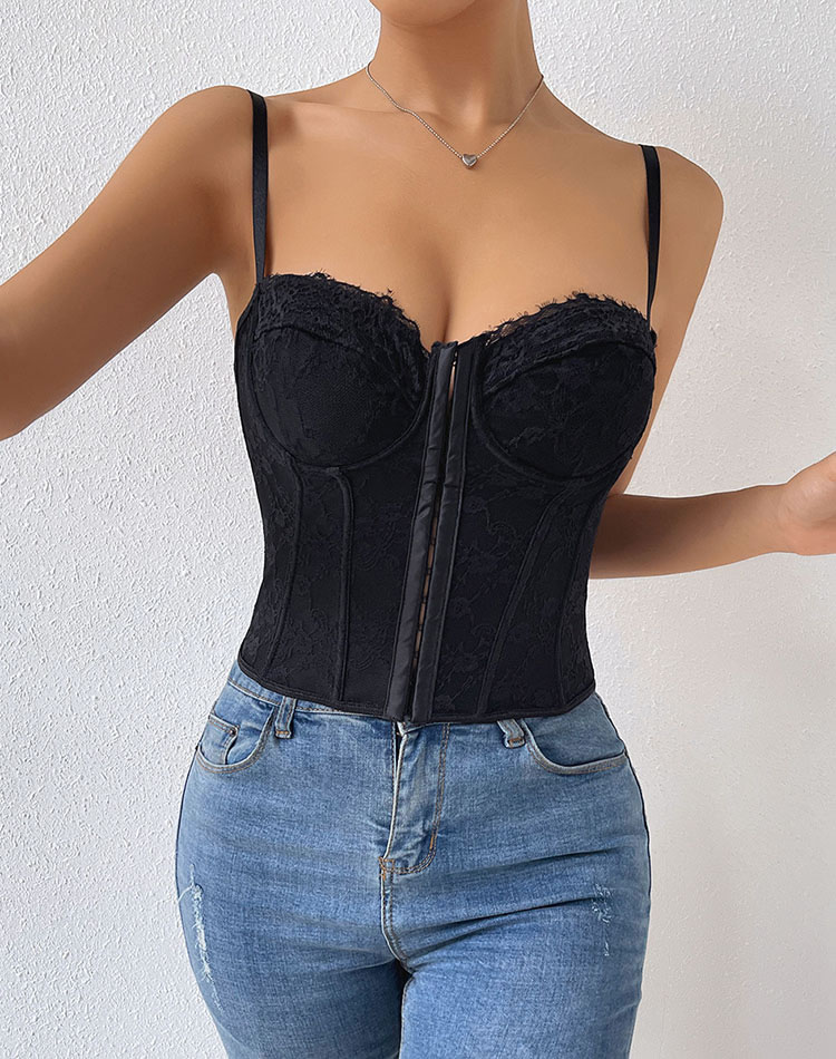 This stunning black lace corset top is designed to enhance your silhouette with its intricate lace detailing and structured fit. While the adjustable straps offer a customizable fit. Perfect for adding a touch of elegance to any outfit.