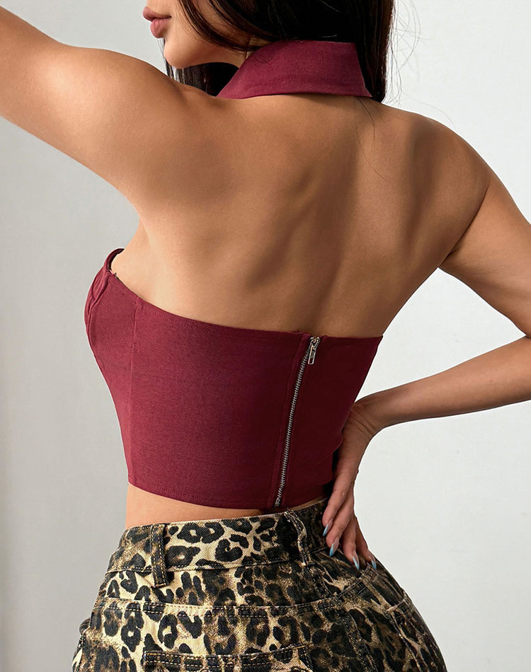 Elevate your style with this vibrant burgundy corset that features a sleek, structured design. The addition of a leopard print tie adds a touch of wild flair, making it ideal for both casual outings and more formal events. The bustier's supportive construction ensures comfort throughout the day.