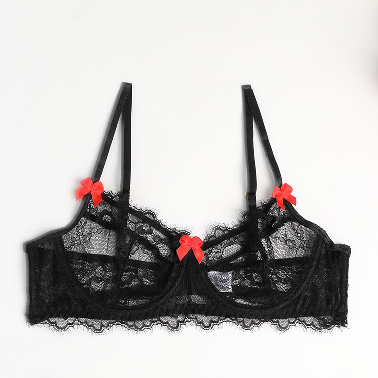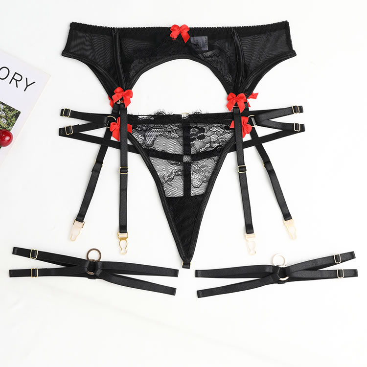 Delight your sweetheart with this stunning bra set. Featuring sheer lace underwire cups and adjustable spaghetti straps adorned with charming satin bow accents, it combines elegance and allure. The hook and eye back closure ensures a perfect fit, while the matching high-waisted garter belt with adjustable garter straps and wraparound leg garters adds a seductive touch. Complete with a matching thong panty, this set is perfect for creating unforgettable moments.