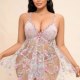 Float through your night in this dreamy sheer babydoll covered in soft pink, blue, and white floral embroidery. The V-neckline with applique trim enhances your natural shape, while adjustable straps let you customize the fit. Lightweight mesh flows gently over curves — no squeezing or hiding needed. Perfect for date nights, self-love moments, or just feeling like a garden goddess in your own space.