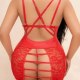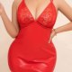Turn heads in this fiery red mini dress that blends smooth faux leather with floral lace panels for a look that’s equal parts fierce and flirty. The deep V-neckline highlights your curves, while adjustable crisscross straps at the back let you customize the fit. Sheer lace cutouts at the hips add daring detail — perfect for date nights, boudoir shoots, or whenever you want to feel unstoppable in your own skin.