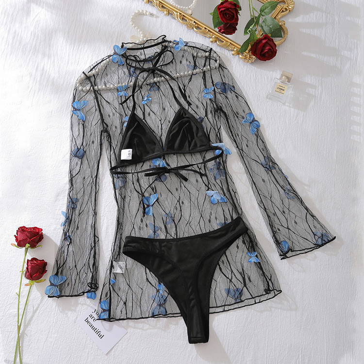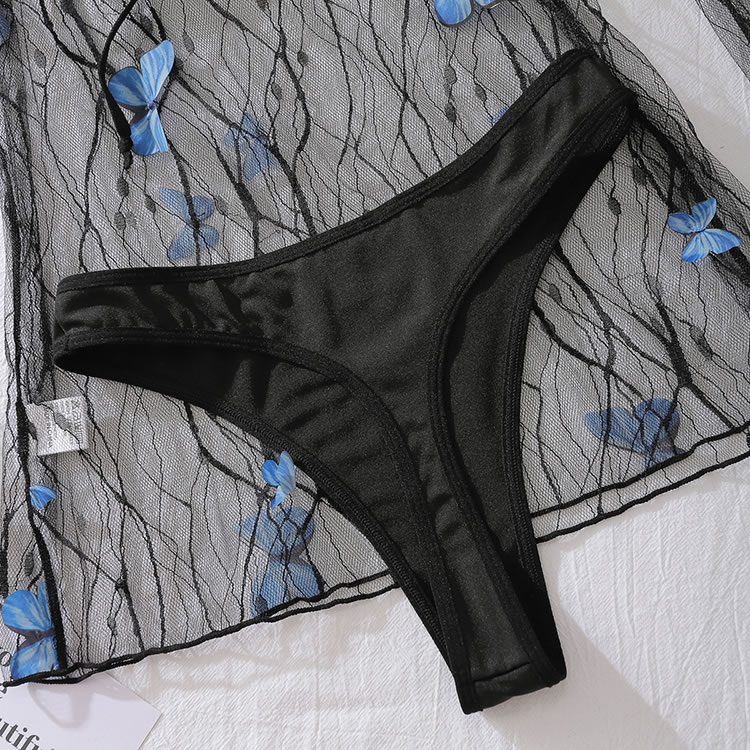 Step into allure with this black mesh lingerie set. The Chemises features delicate blue butterfly accents that enhance its charm, paired with sheer fabric for added allure. The matching thong offers both style and support, creating a captivating look. Ideal for adding a daring and captivating vibe to your lingerie collection.