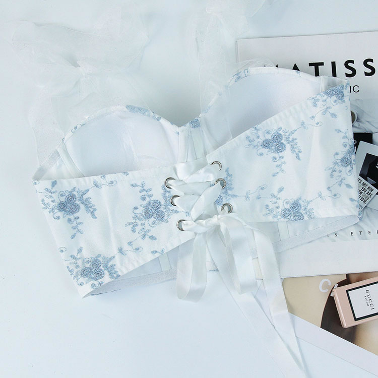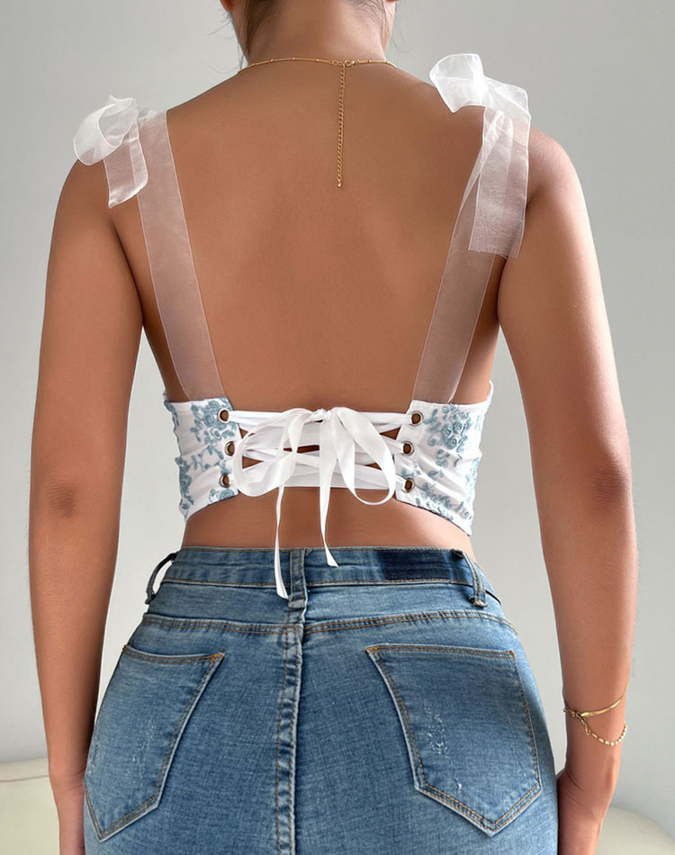 Elevate your style with this romantic floral embroidery crop top. The sweetheart neckline and fitted design accentuate your figure, while the sheer organza straps add a modern twist. The adjustable fit ensures comfort and versatility.