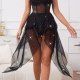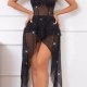 Designed to make a statement, this black mesh lingerie dress combines structure and allure. The corset-style top hugs the torso with a supportive fit, while the sheer fabric adorned with tiny glittery dots adds visual interest. The asymmetrical hemline reveals one leg while draping elegantly on the other side, offering both style and movement. With a cutout back and thin straps, it’s perfect for those who want to blend edgy fashion with romantic sensuality.