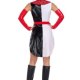 Step into the spotlight with this bold and dramatic costume that blends classic villain flair with modern style. The outfit features a striking split design in black and white, accented with red leopard-print trim at the collar and a matching belt for definition. Paired with long red gloves and panty, it creates a powerful silhouette perfect for Halloween, cosplay, or themed parties. The asymmetrical front adds a daring touch, making it ideal for those who love to stand out.( High boots not included)