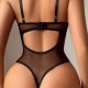 Command attention in this daring black teddy, a perfect fusion of edgy design and sensual appeal. This one-piece features a bold faux leather frame with silver-tone stud detailing that outlines the body and creates a striking visual contrast against the sheer mesh panels. A prominent front zipper adds a touch of rebellious chic, plunging deep for a dramatic effect. With its form-fitting silhouette and thong back, this teddy is designed to accentuate every curve, making it an unforgettable choice for those who dare to be bold.