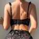 This black lace lingerie set combines a supportive bralette with a flirty high-waisted skirt-style bottom for a bold yet elegant look. The bra features intricate floral lace detailing along the cups and straps. The matching skrit are crafted from sheer lace with a soft ruffled hem and a delicate bow at the front, adding a romantic touch. Designed to accentuate curves, this set is ideal for those who love a blend of vintage charm and modern confidence.