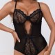 This sleek black bodysuit combines bold design with a touch of elegance, featuring delicate lace detailing on the bust and front panel. The sheer mesh fabric offers a daring look while maintaining structure, enhanced by adjustable straps and a flattering cut that accentuates your silhouette. Designed for confidence and comfort, it’s perfect for intimate moments or as a statement piece under clothing.