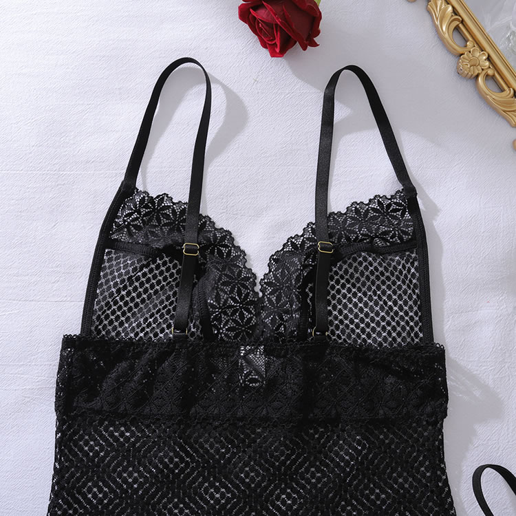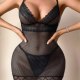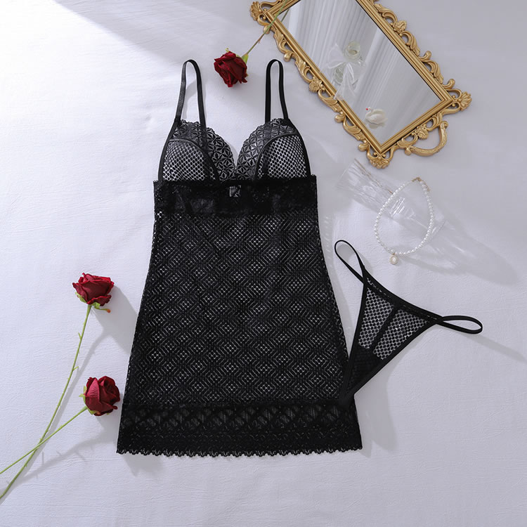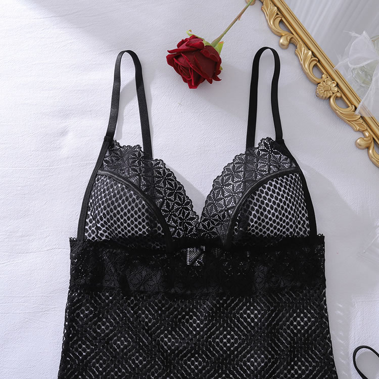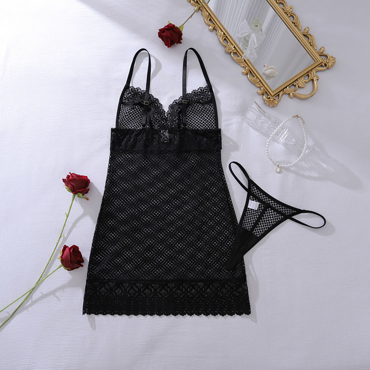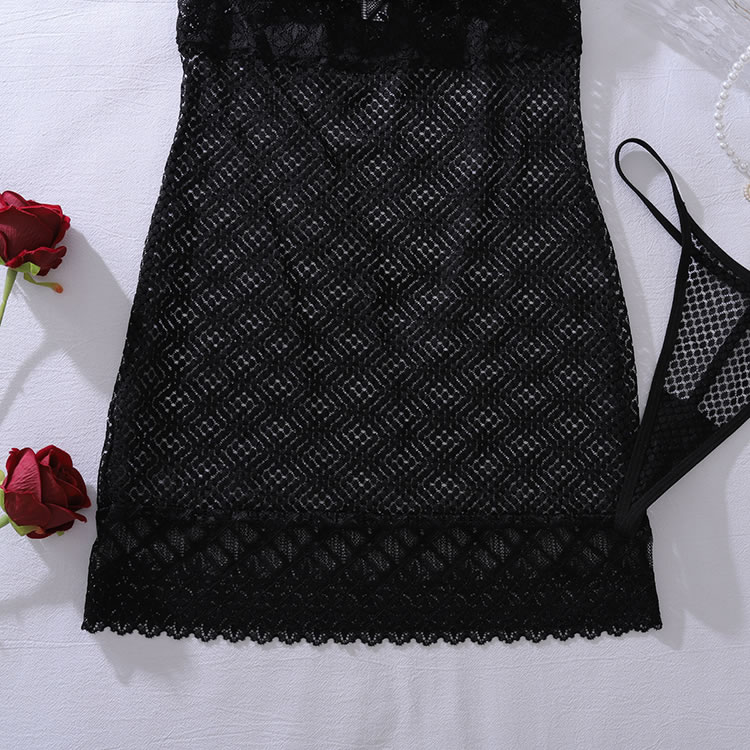 This captivating chemise combines the classic appeal of fishnet with delicate floral lace for a truly mesmerizing effect. The body-hugging silhouette is crafted from sheer mesh, offering a bold and transparent look, while intricate lace trim elegantly frames the V-neckline, waist, and hem. With its adjustable spaghetti straps and form-fitting design, this piece is designed to highlight your curves with effortless allure.
